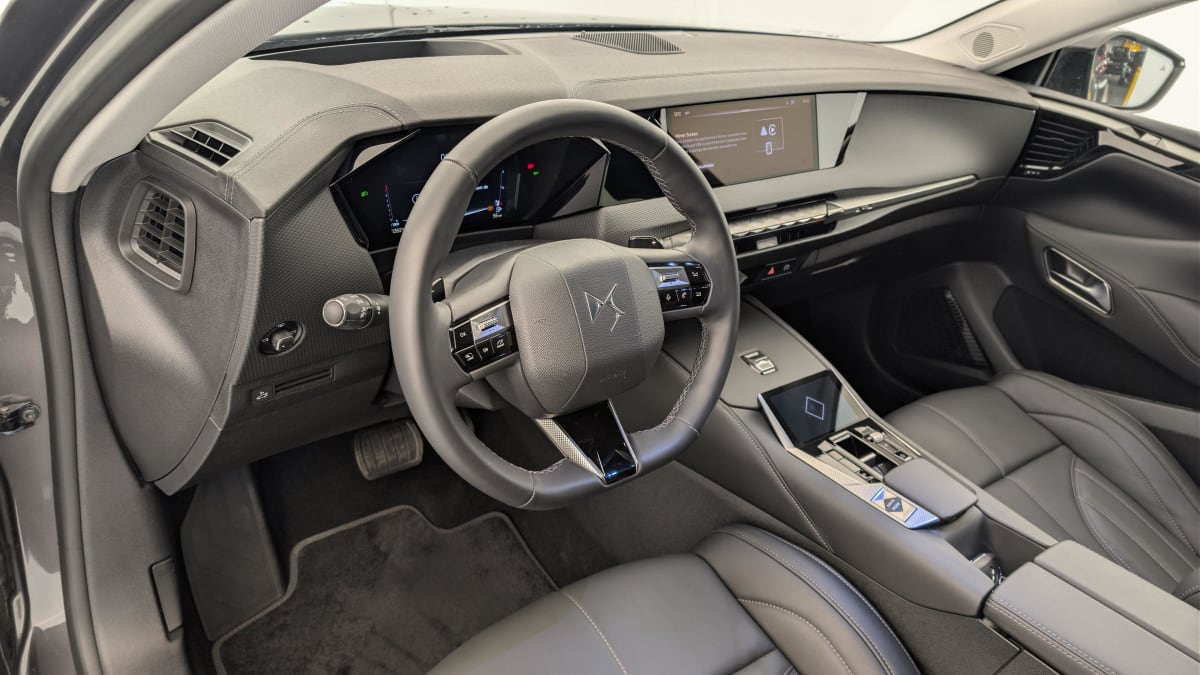 - Intérieur Cuir grainé Noir Basalte et Toile DS : Ciel de pavillon clair Décors de panneaux de porte Chrome guilloché Volant en cuir fleur Mistral Console centrale en Toile DS Mistral Planche de bord en toile DS Noir Basalte façon écaille Panneaux de portes en toile DS Noir Basalte façon écaille Sellerie en Cuir grainé Noir Basalte et Toile DS Parties centrales des sièges AV, partie centrale des sièges latéraux AR et partie AV des appuie-tête en cuir. Bourrelets latéraux des sièges AV, accoudoir central et siège central AR, et parties latérales et AR des appuis tête en Toile DS.