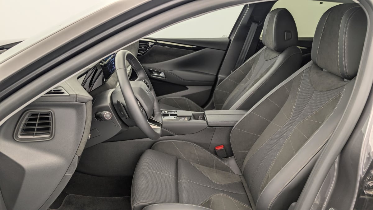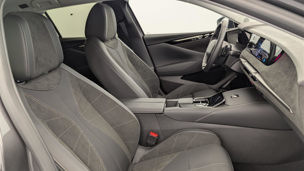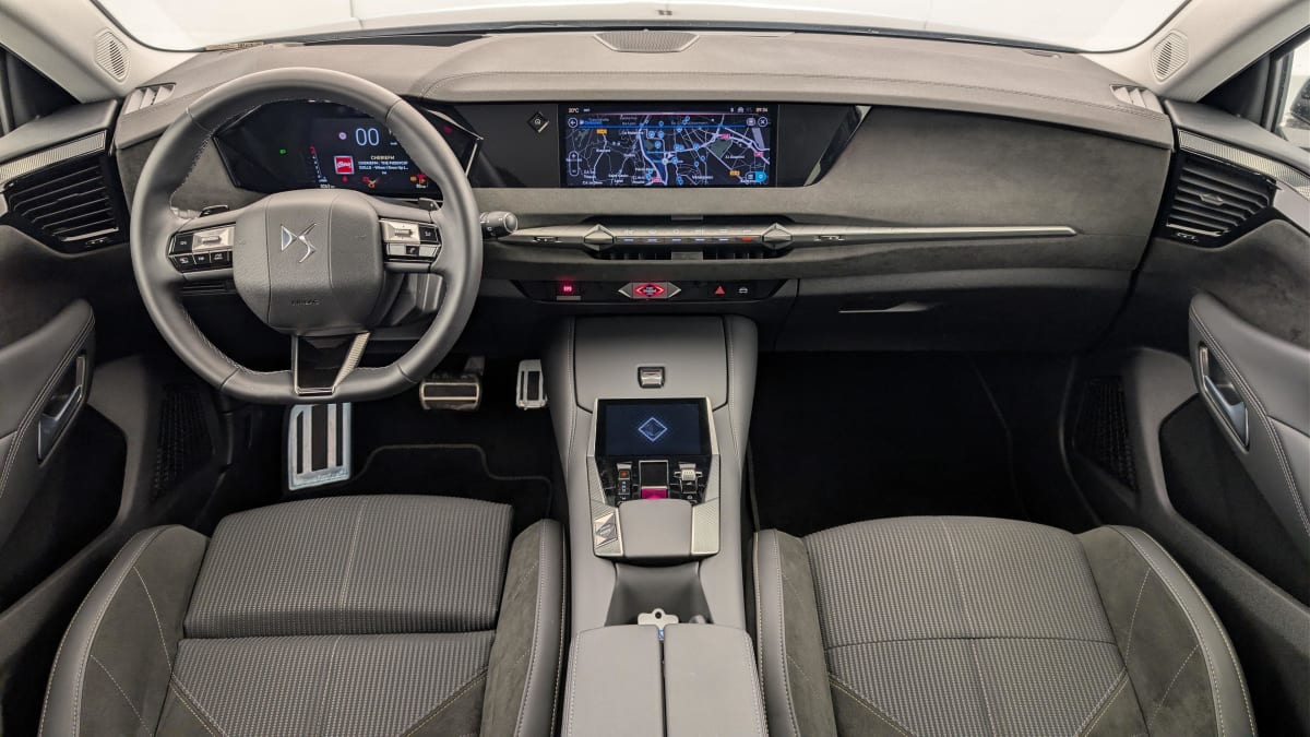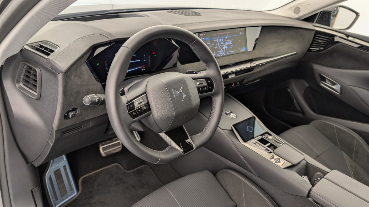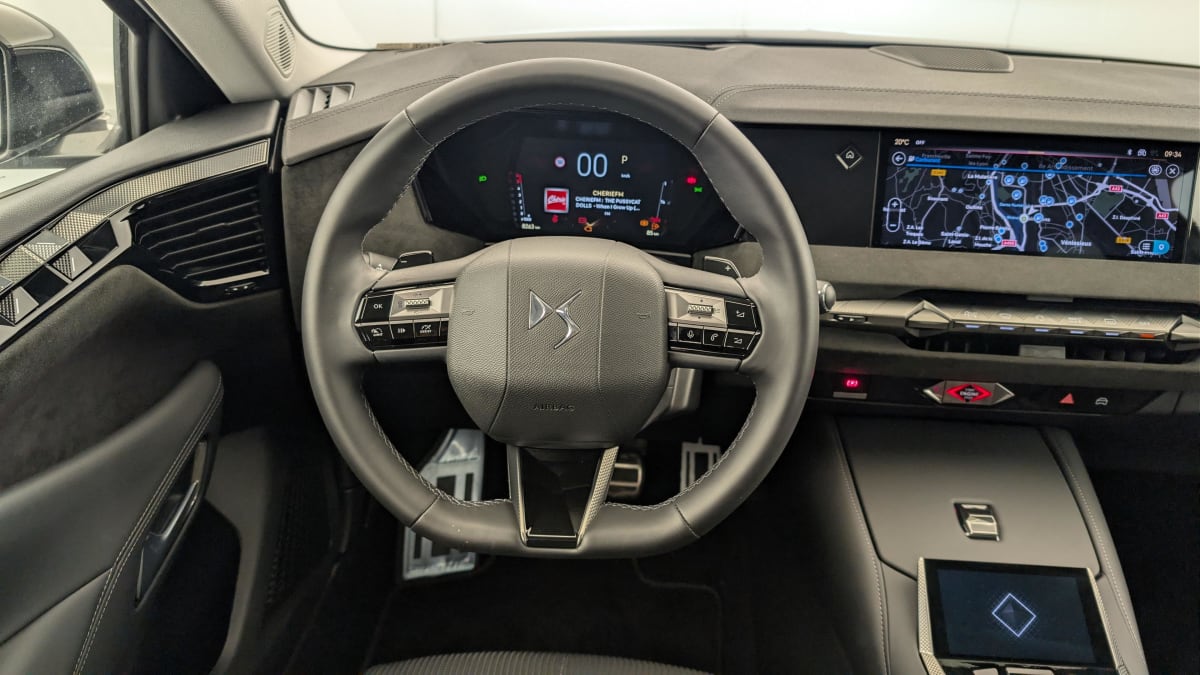 - Intérieur Alcantara Noir : Planche de bord en Alcantara Ciel de pavillon clair Sellerie en Tissu Tressé Basalte avec Alcantara et toile DS Décors de panneaux de porte Chrome guilloché Volant cuir Fleur Mistral Console en toile DS Noir Basalte Panneaux de porte en Alcantara et Toile DS Noir Basalte