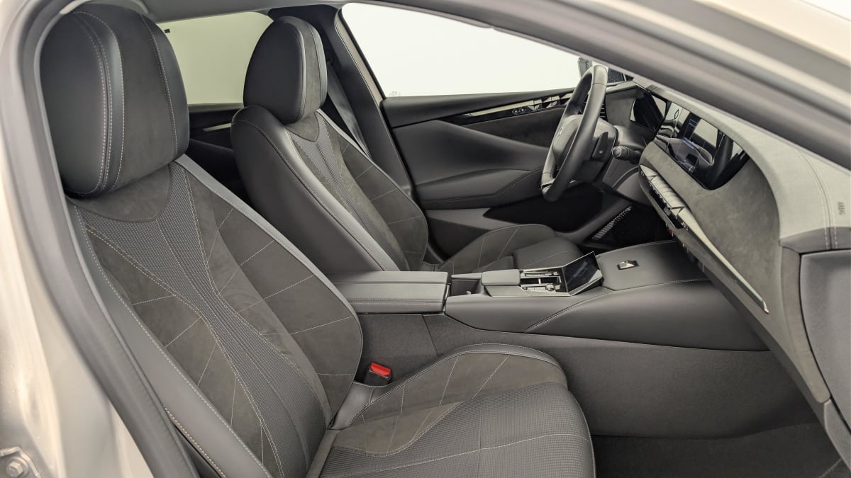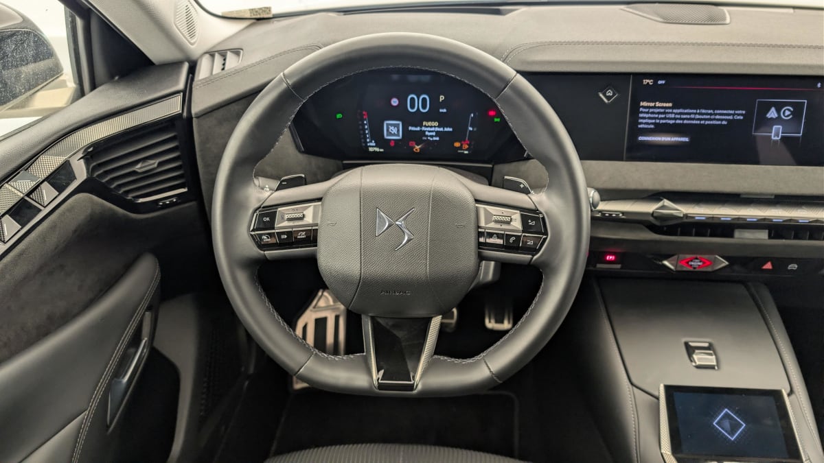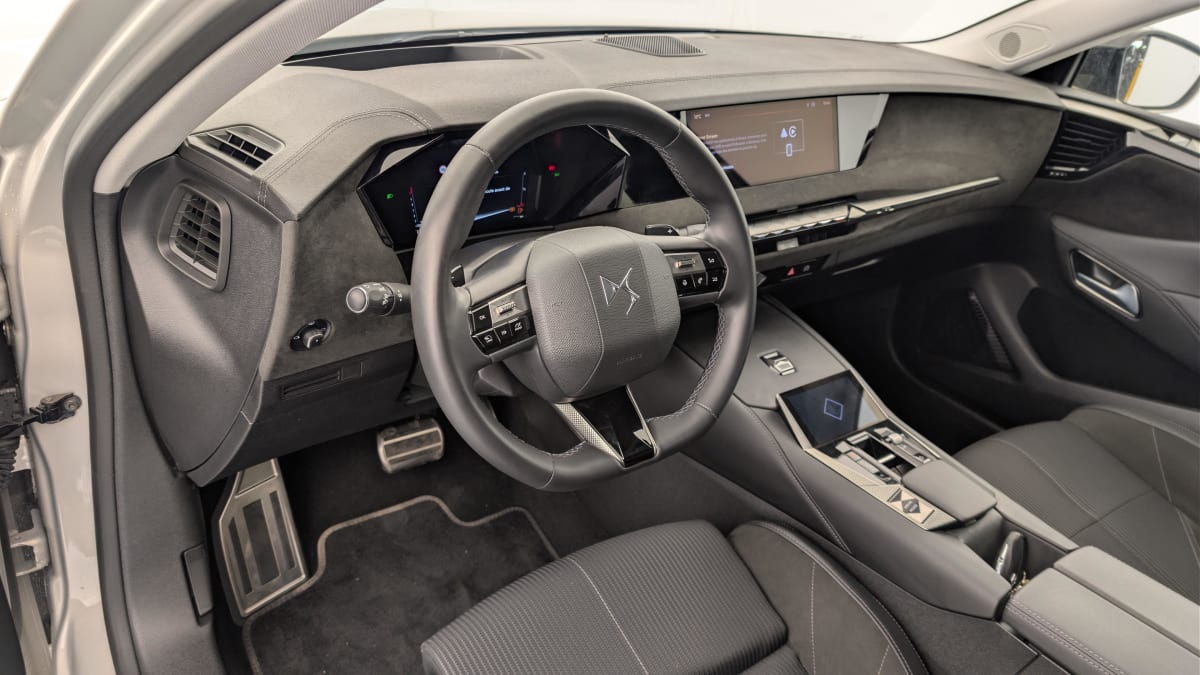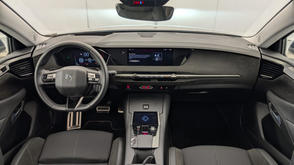 - Intérieur Alcantara Noir : Planche de bord en Alcantara Ciel de pavillon clair Sellerie en Tissu Tressé Basalte avec Alcantara et toile DS Décors de panneaux de porte Chrome guilloché Volant cuir Fleur Mistral Console en toile DS Noir Basalte Panneaux de porte en Alcantara et Toile DS Noir Basalte