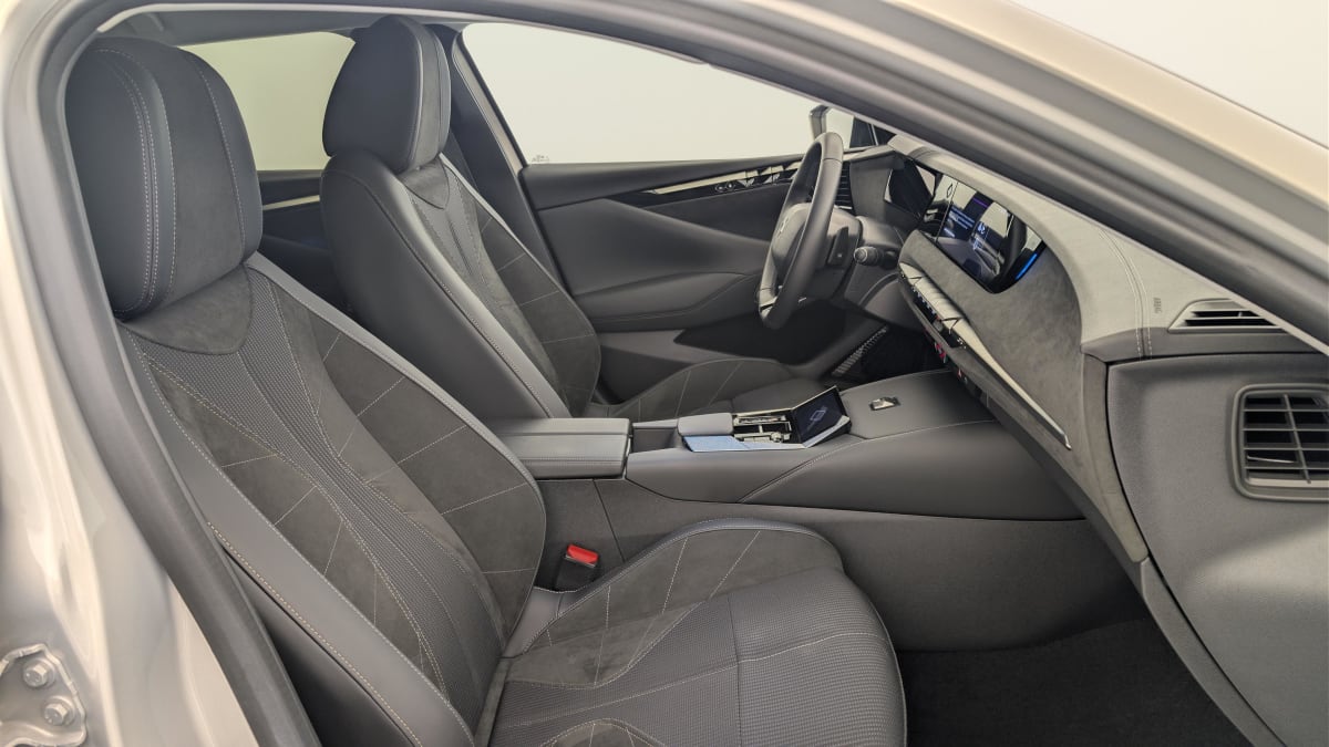 - Intérieur Alcantara Noir : Planche de bord en Alcantara Ciel de pavillon clair Sellerie en Tissu Tressé Basalte avec Alcantara et toile DS Décors de panneaux de porte Chrome guilloché Volant cuir Fleur Mistral Console en toile DS Noir Basalte Panneaux de porte en Alcantara et Toile DS Noir Basalte