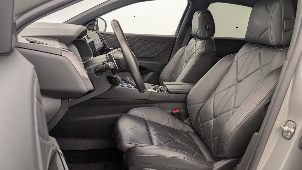 - Intérieur Cuir Noir Basalte : Pédalier et le repose-pied aluminium Vitres AR et lunette AR surteintées Surtapis AV/AR Accoudoir central AR Réglage du nez de coussin Sièges AV électriques Réglage électrique du siège, réglage lombaire pneumatique, réglage mécanique du nez de coussin Sellerie Cuir Claudia et Toile DS Mistral Volant Cuir fleur avec coussin d'airbag en cuir Montre rotative B.R.M. R180 Panneaux de portes en toile DS Noir Basalte Ciel de pavillon Sombre