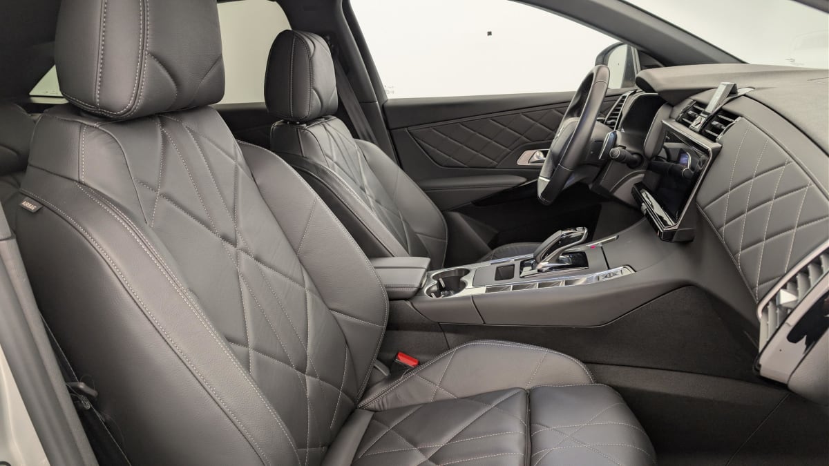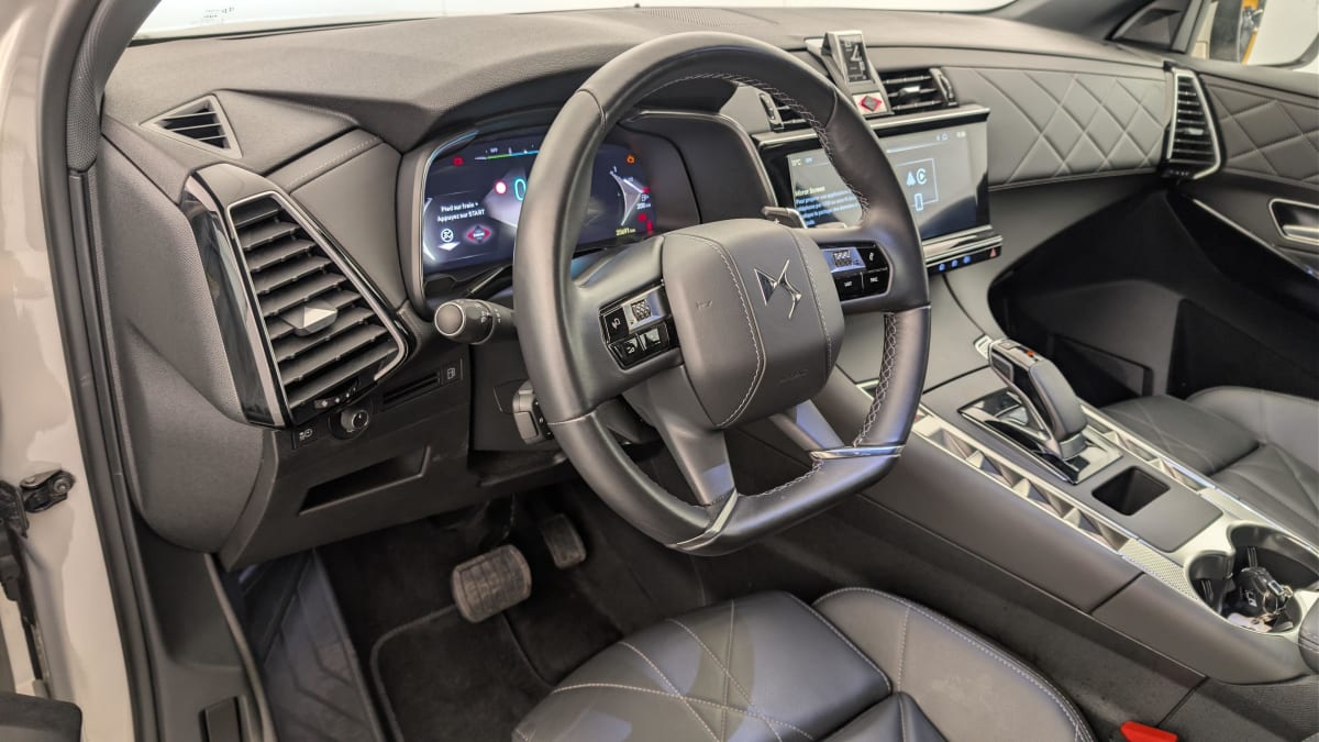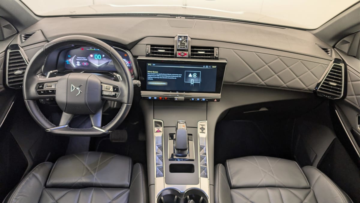 - Intérieur Cuir Noir Basalte : Pédalier et le repose-pied aluminium Vitres AR et lunette AR surteintées Surtapis AV/AR Accoudoir central AR Réglage du nez de coussin Sièges AV électriques Réglage électrique du siège, réglage lombaire pneumatique, réglage mécanique du nez de coussin Sellerie Cuir Claudia et Toile DS Mistral Volant Cuir fleur avec coussin d'airbag en cuir Montre rotative B.R.M. R180 Panneaux de portes en toile DS Noir Basalte Ciel de pavillon Sombre