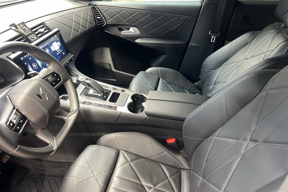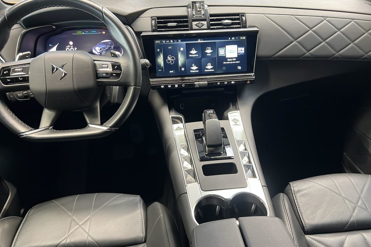 - Intérieur Cuir Noir Basalte : Pédalier et le repose-pied aluminium Vitres AR et lunette AR surteintées Surtapis AV/AR Accoudoir central AR Réglage du nez de coussin Sièges AV électriques Réglage électrique du siège, réglage lombaire pneumatique, réglage mécanique du nez de coussin Sellerie Cuir Claudia et Toile DS Mistral Volant Cuir fleur avec coussin d'airbag en cuir Montre rotative B.R.M. R180 Panneaux de portes en toile DS Noir Basalte Ciel de pavillon Sombre