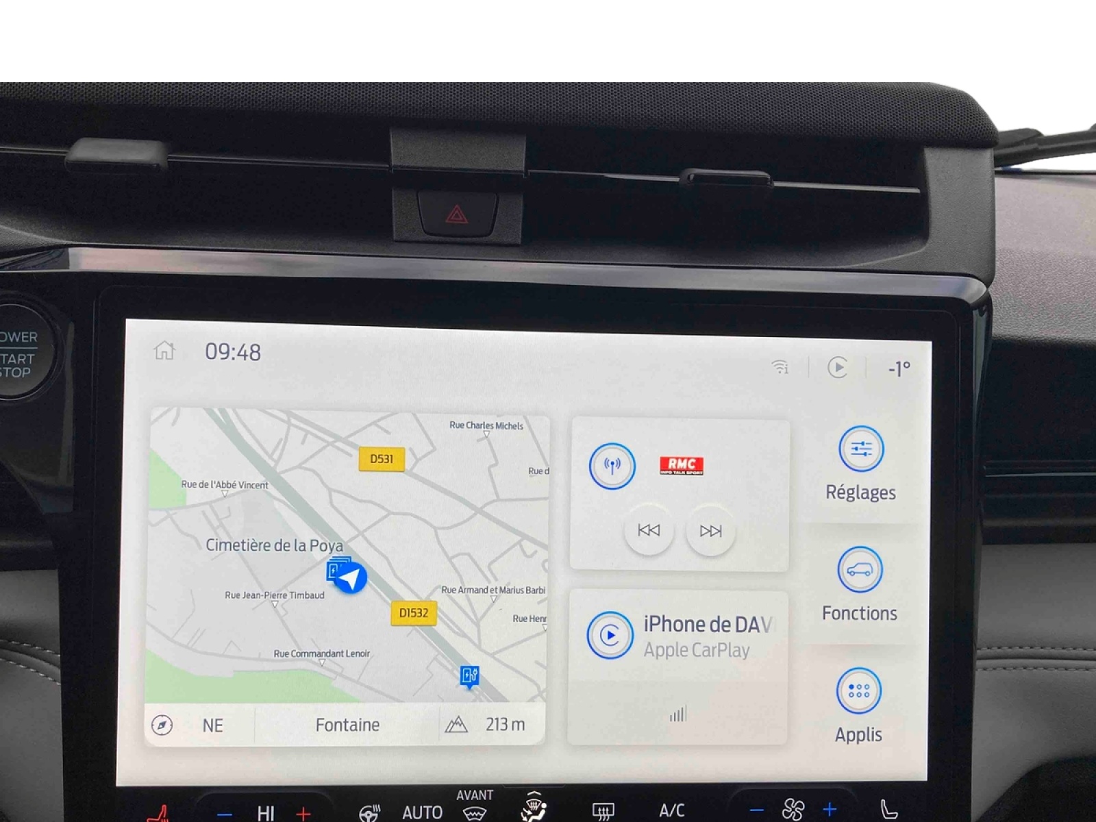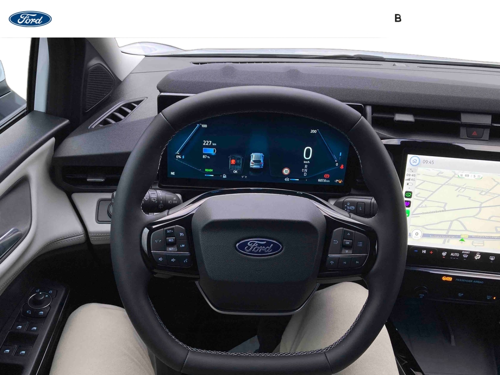 - Système audio avec SYNC4 avec écran tactile 12" commandes vocales, 2 ports USB, Apple CarPlay et Android auto, 6 haut-parleurs