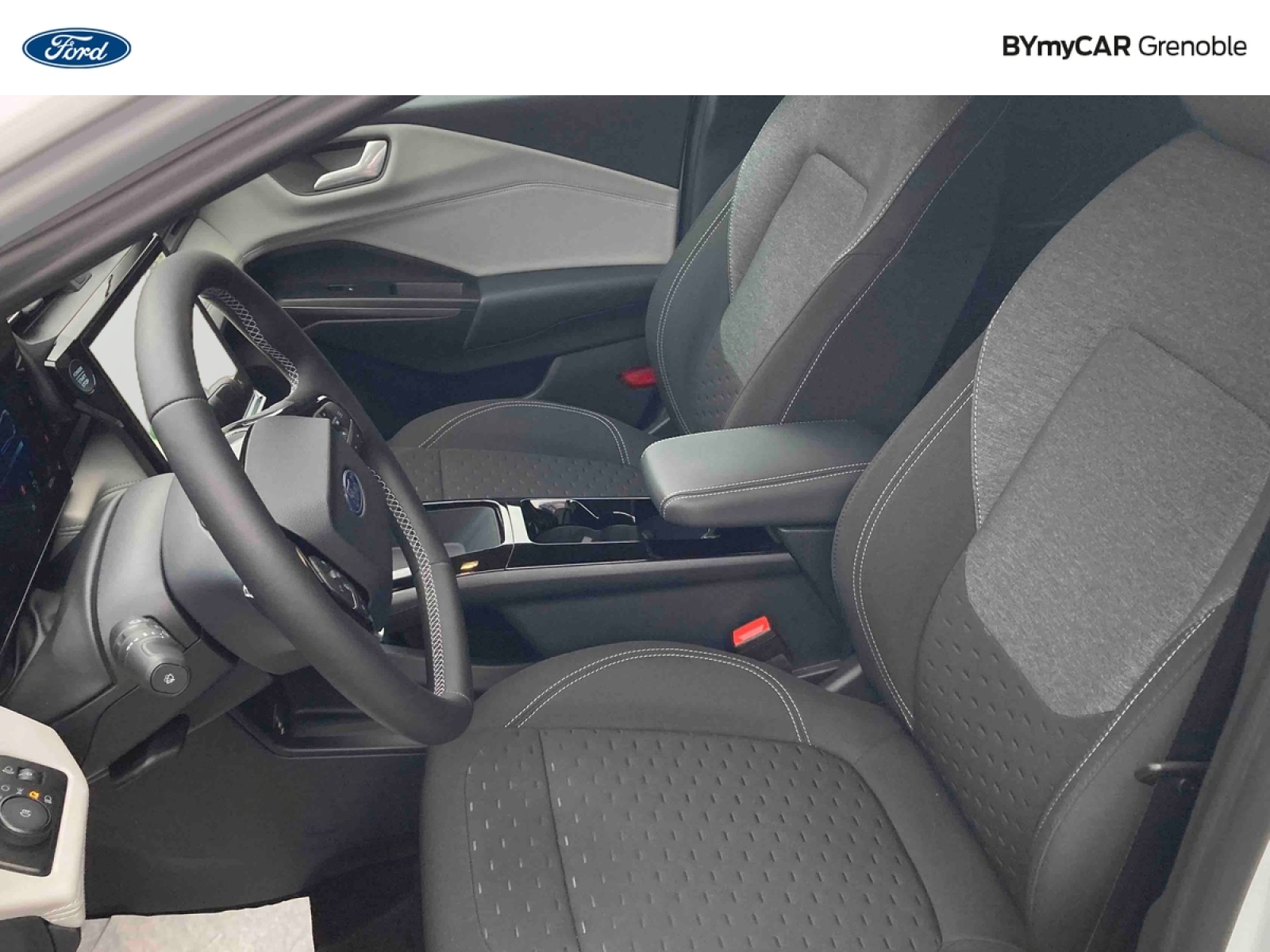 - Sellerie en tissu noir avec surpiqûres grises