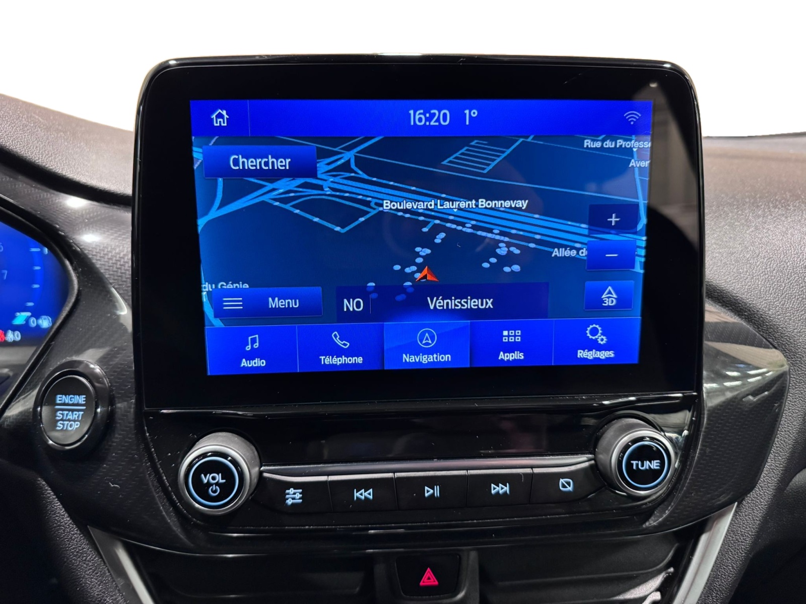 - Système audio Ford SYNC3 avec écran tactile 8", commandes vocales, 2 ports USB, alerte contresens, compatible AppLink, Apple CarPlay et Android auto, 6 HP