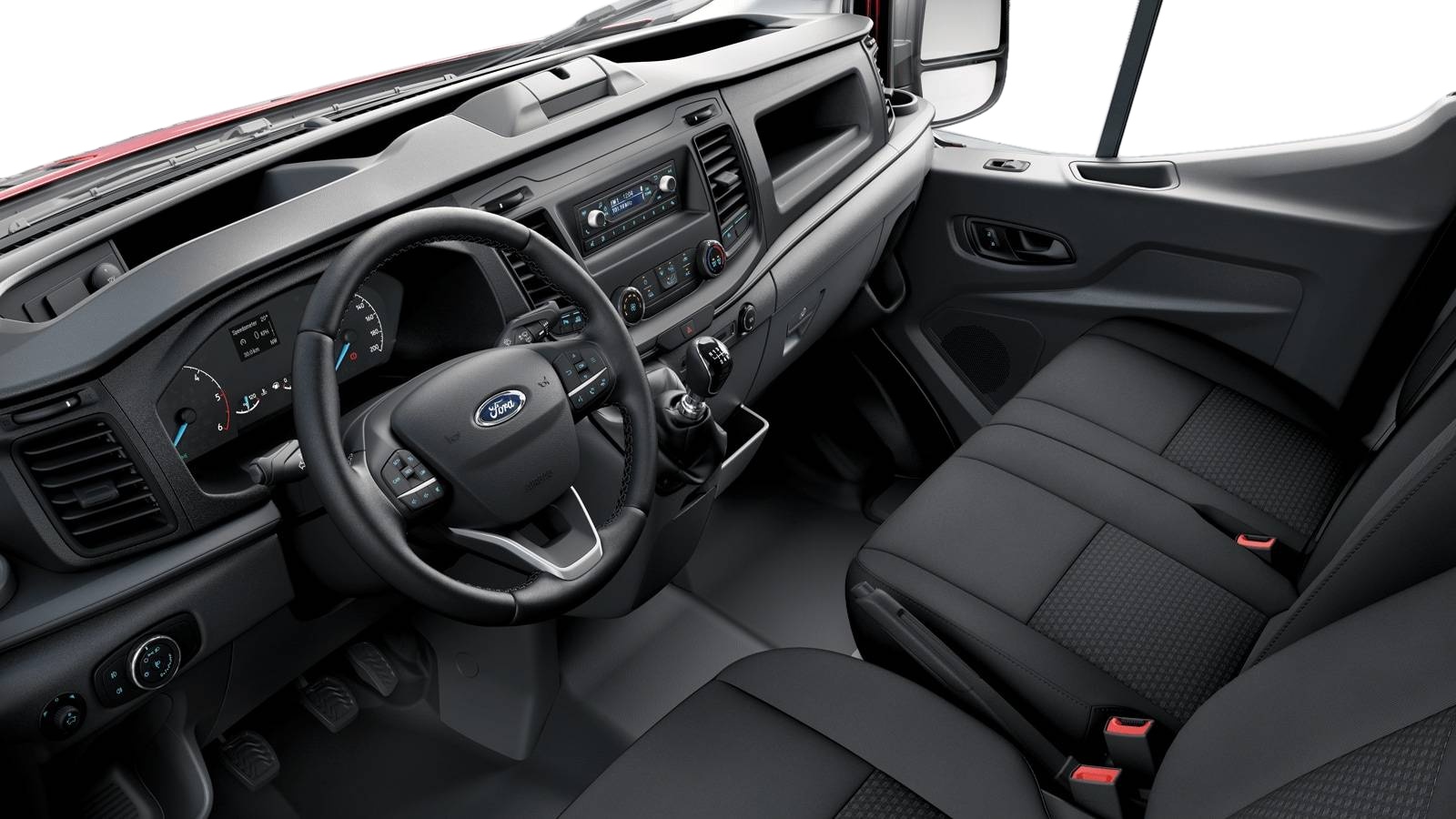 - Banquette passager AV 2 places à assise relevable pour accès espace de rangement et tablette rabattable