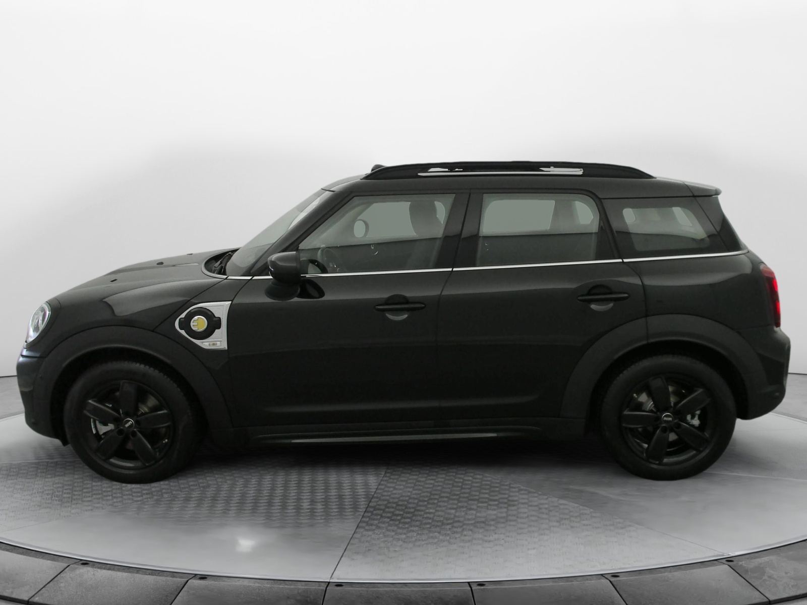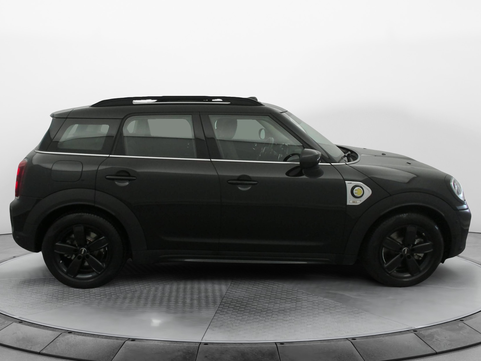 - Sidescuttle chromée avec logo MINI "E" côté gauche avec couvercle rabattable et accès à la prise de de charge