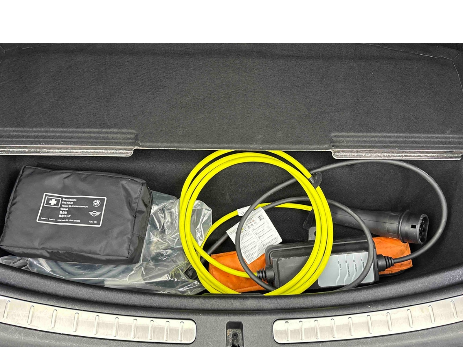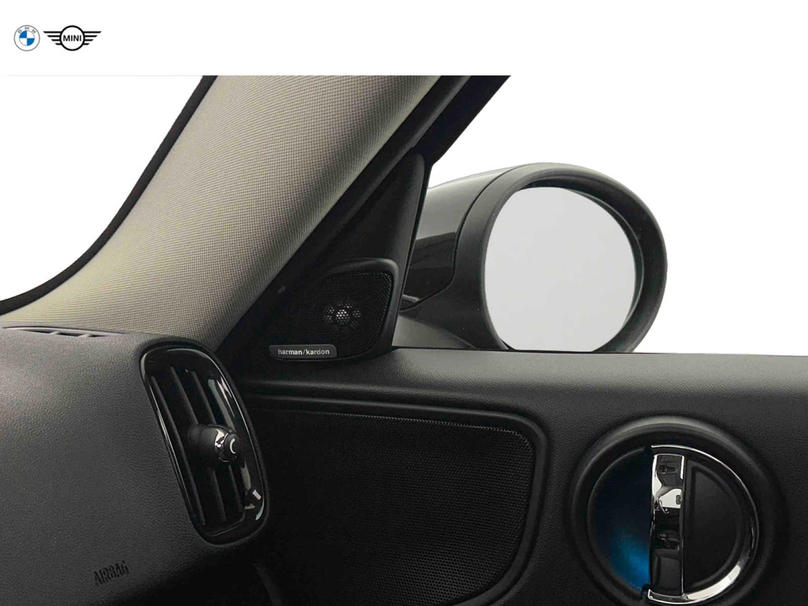 - Sidescuttle chromée avec logo MINI "E" côté gauche avec couvercle rabattable et accès à la prise de de charge