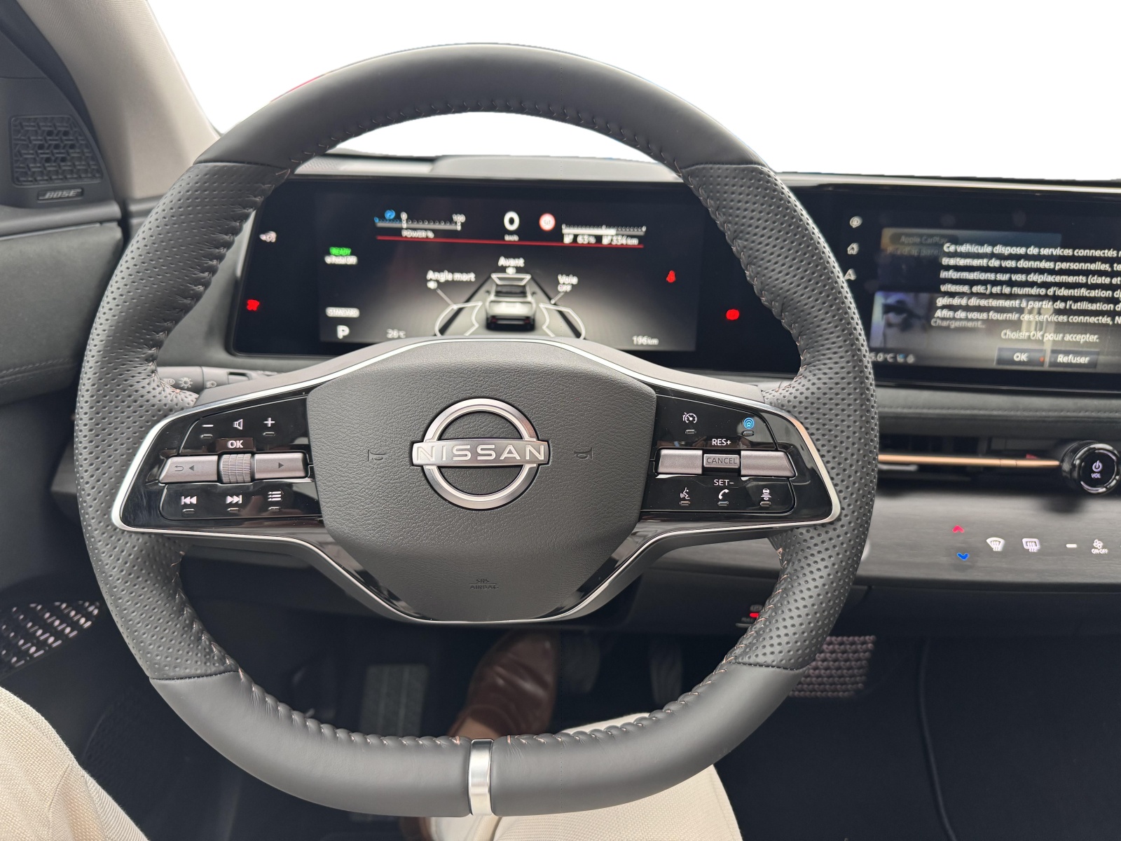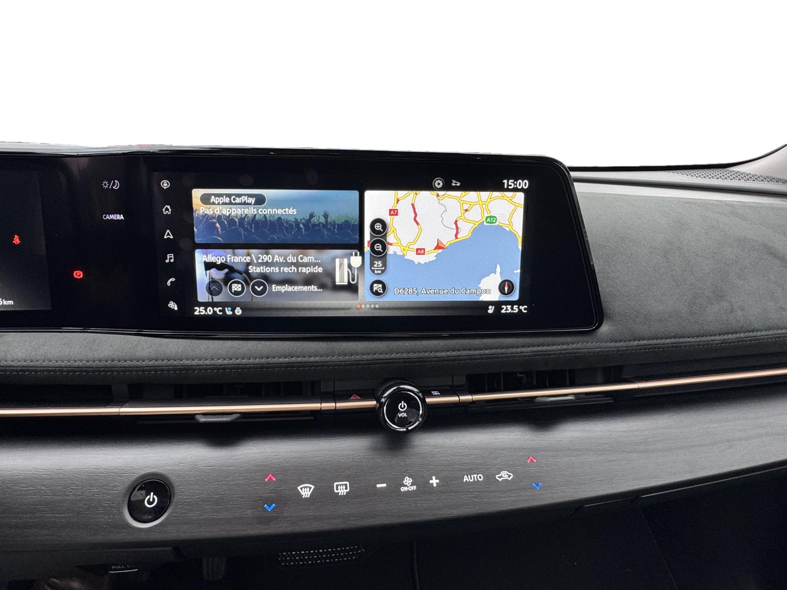 - Système de navigation NissanConnect avec écran tactile 12,3" : Live Traffic et cartes 3D, Navigation porte-à-porte, Recherche par Points d'Intérêt, Google Street View, Vue Satellite et Météo, Mise à jour des cartes et logiciels, Prix des carburants, Commandes vocales avancées avec Amazon Alexa®