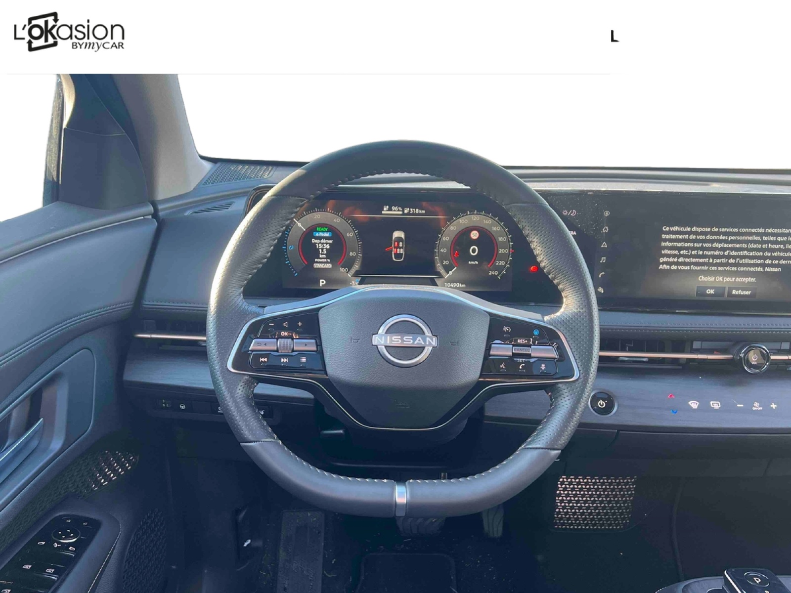- NissanConnect Services - Services télématiques avec accès à distance depuis un smartphone - Informations sur le niveau de charge et l'autonomie restante - Informations sur l'historique d'éco-conduite - Activation de la recharge - Contrôle de la température (chauffage ou climatisation) - Contrôle de l'allumage des phares et klaxon - Verrouillage / Déverrouillage du véhicule - Alerte de pression des pneus - Localisation du véhicule - Aide et assistance Nissan - Alertes intelligentes : notifications en cas de dépassement d'une vitesse, d'une zone ou d'un temps de conduite prédéfinis -