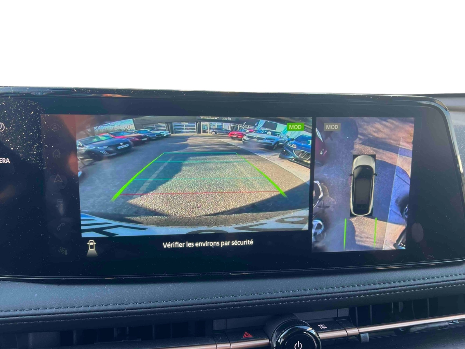 - Nissan AVM - Vision Intelligente à 360° : système d'aide au stationnement qui facilite les manoeuvres de stationnement en offrant une vision à 360° : - Caméra AR avec repères de gabarit - Caméra AV - Caméras latérales situées dans les rétroviseurs extérieurs