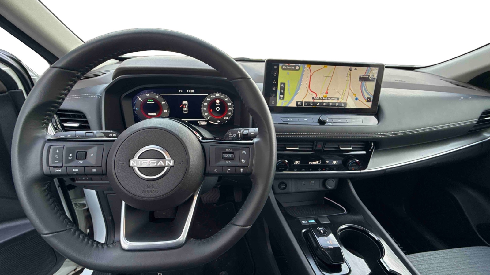 - Système de navigation NissanConnect avec écran tactile 12,3" : Cartes 3D, Live Traffic, recherche par Points d'Intérêts, mise à jour des Cartes et logiciels, navigation porte-à-porte