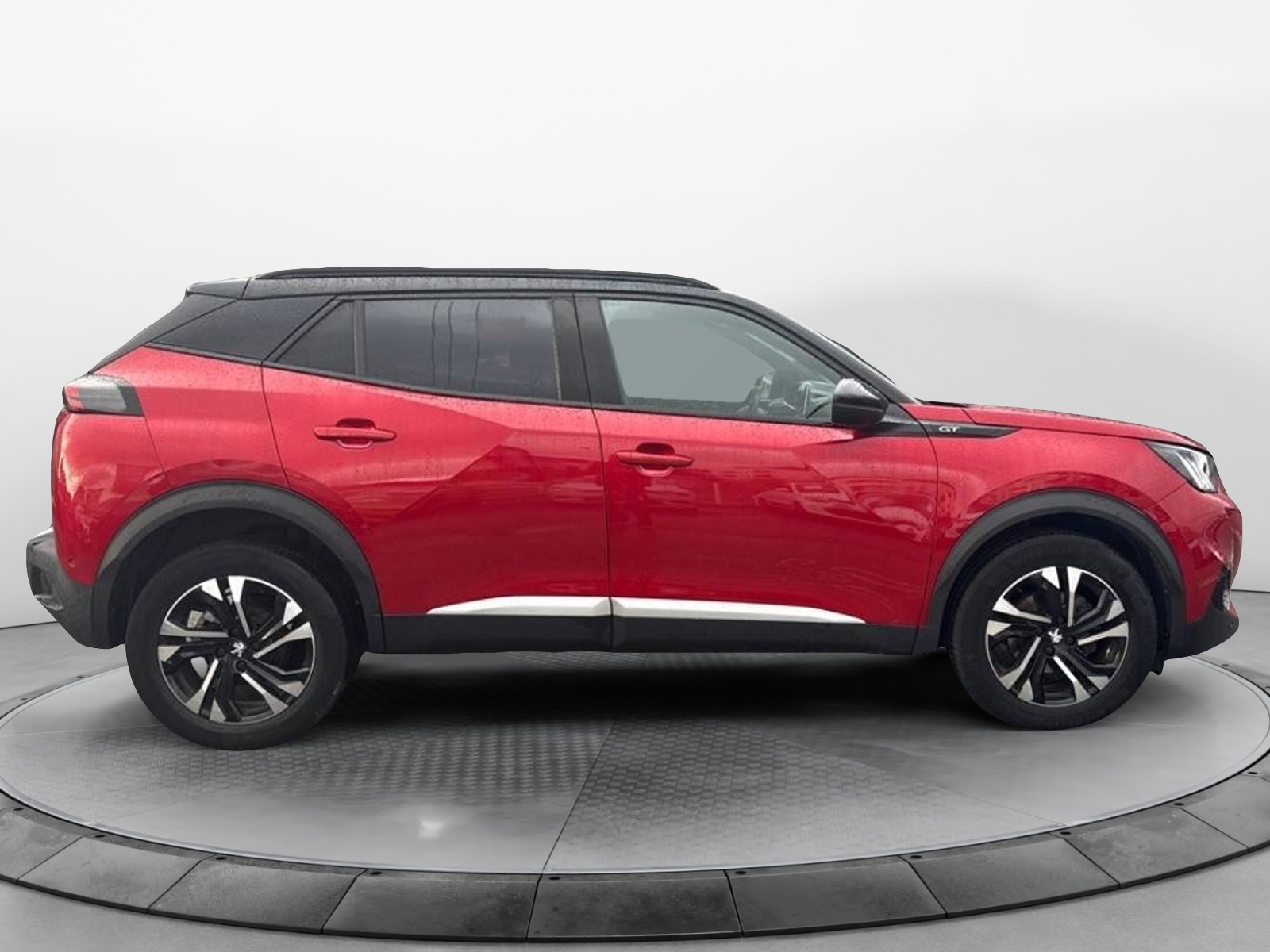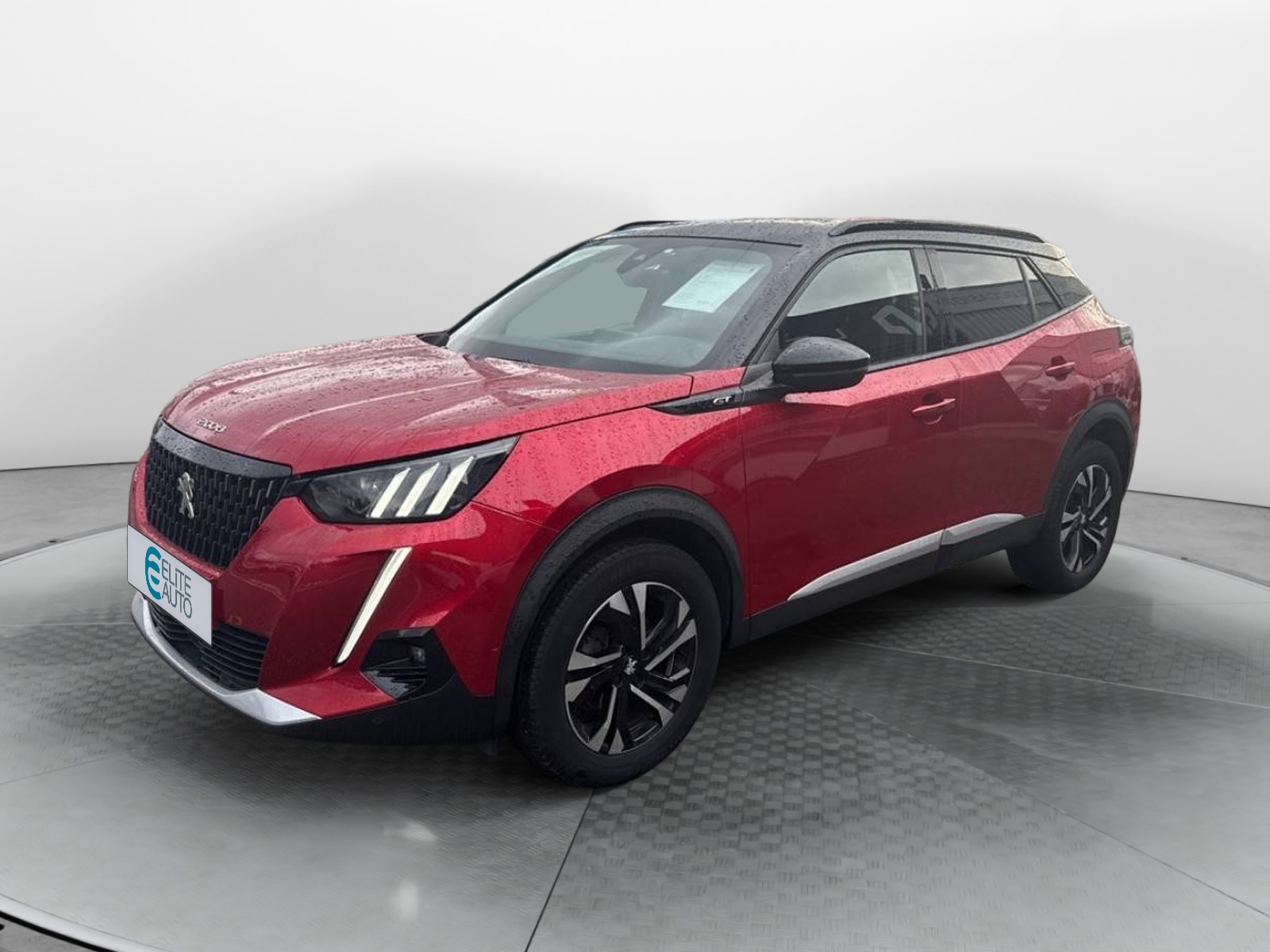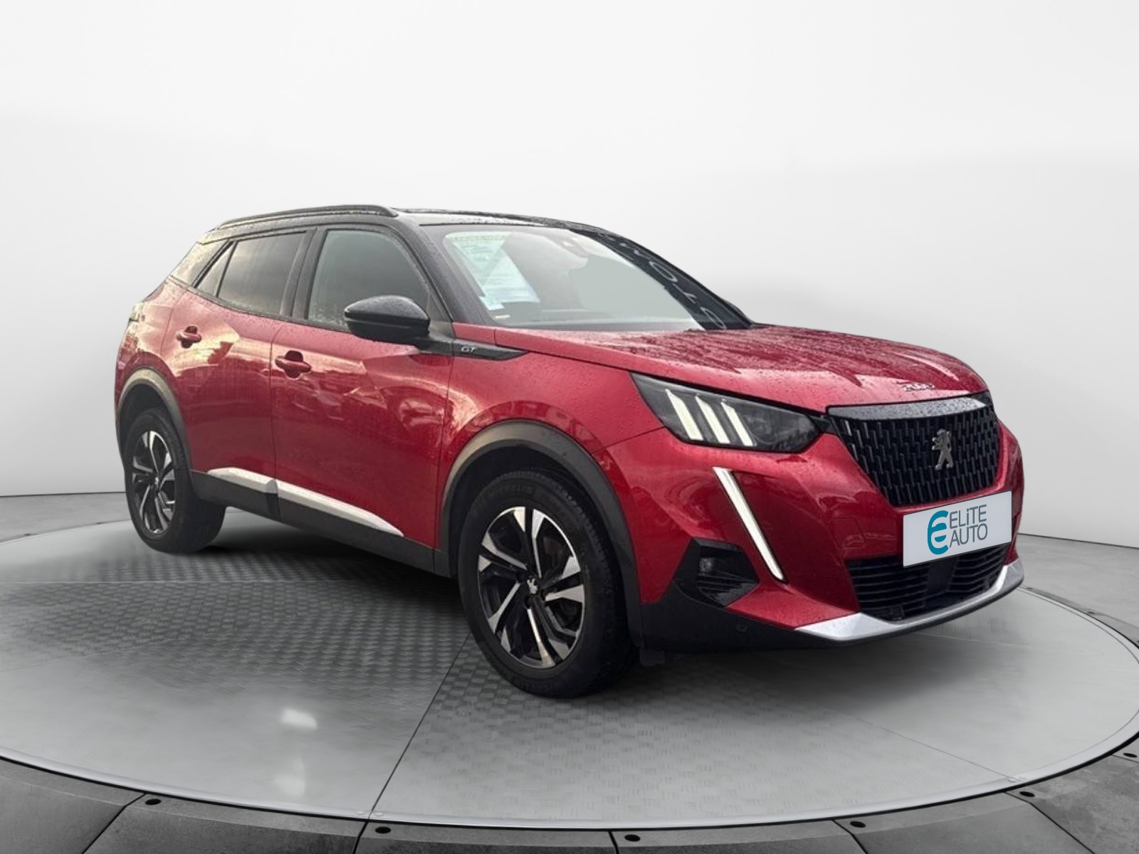 - Volant compact cuir fleur avec laçage vert, Lion chromé et badge GT et commandes multimédia sur volant