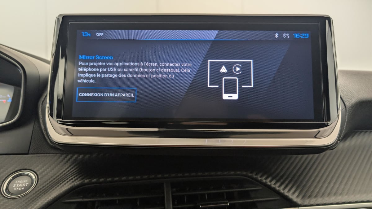 - Peugeot i-Connect: Radio DAB avec écran tactile couleur personnalisable 10" HD, Bluetooth, Mirror Screen sans fil (Apple CarPlay/Android Auto), Wifi, 1 prise USB type C ( Data+charge) et 1 prise USB type C (Charge) sur console AV