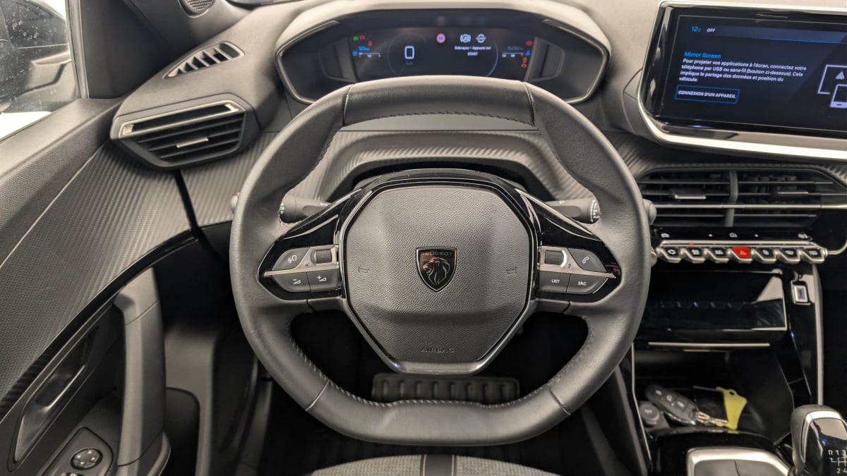 - Volant compact en croûte de cuir avec commandes multimédia intégrées