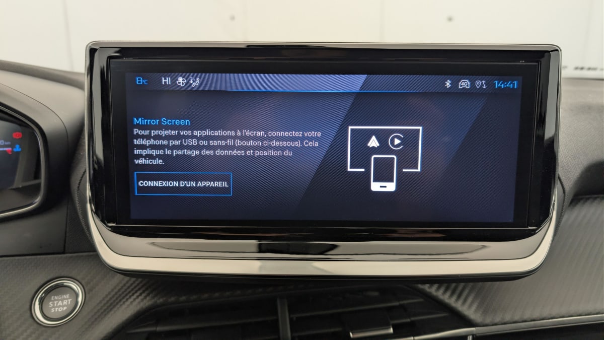 - Peugeot i-Connect: Radio DAB avec écran tactile couleur personnalisable 10" HD, Bluetooth, Mirror Screen sans fil (Apple CarPlay/Android Auto), Wifi, 1 prise USB type C ( Data+charge) et 1 prise USB type C (Charge) sur console AV
