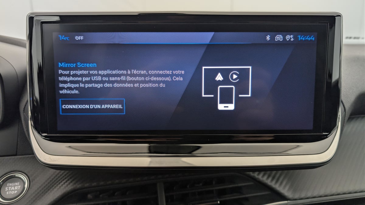 - Peugeot i-Connect: Radio DAB avec écran tactile couleur personnalisable 10" HD, Bluetooth, Mirror Screen sans fil (Apple CarPlay/Android Auto), Wifi, 1 prise USB type C ( Data+charge) et 1 prise USB type C (Charge) sur console AV