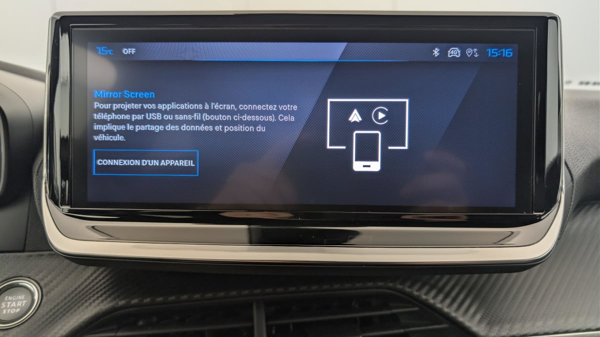 - Peugeot i-Connect: Radio DAB avec écran tactile couleur personnalisable 10" HD, Bluetooth, Mirror Screen sans fil (Apple CarPlay/Android Auto), Wifi, 1 prise USB type C ( Data+charge) et 1 prise USB type C (Charge) sur console AV