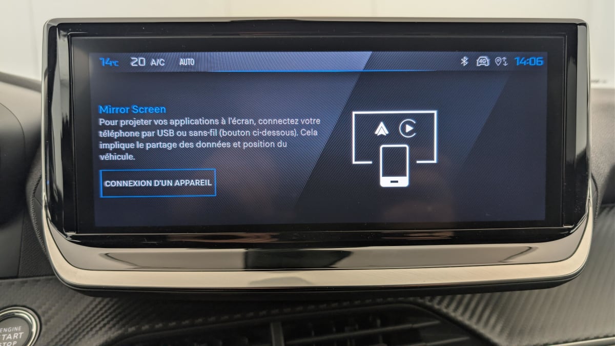 - Peugeot i-Connect: Radio DAB avec écran tactile couleur personnalisable 10" HD, Bluetooth, Mirror Screen sans fil (Apple CarPlay/Android Auto), Wifi, 1 prise USB type C ( Data+charge) et 1 prise USB type C (Charge) sur console AV