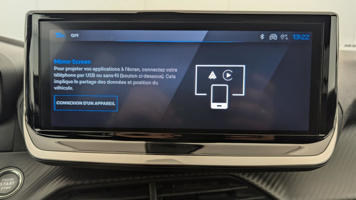 - Peugeot i-Connect: Radio DAB avec écran tactile couleur personnalisable 10" HD, Bluetooth, Mirror Screen sans fil (Apple CarPlay/Android Auto), Wifi, 1 prise USB type C ( Data+charge) et 1 prise USB type C (Charge) sur console AV