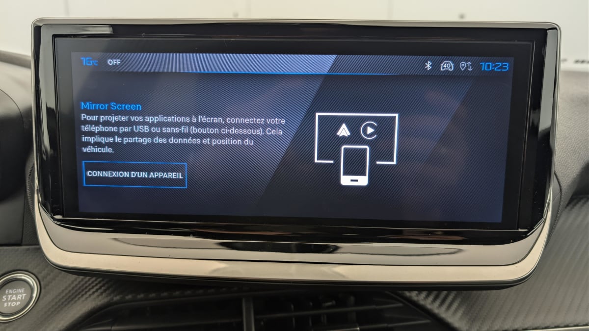 - Peugeot i-Connect: Radio DAB avec écran tactile couleur personnalisable 10" HD, Bluetooth, Mirror Screen sans fil (Apple CarPlay/Android Auto), Wifi, 1 prise USB type C ( Data+charge) et 1 prise USB type C (Charge) sur console AV