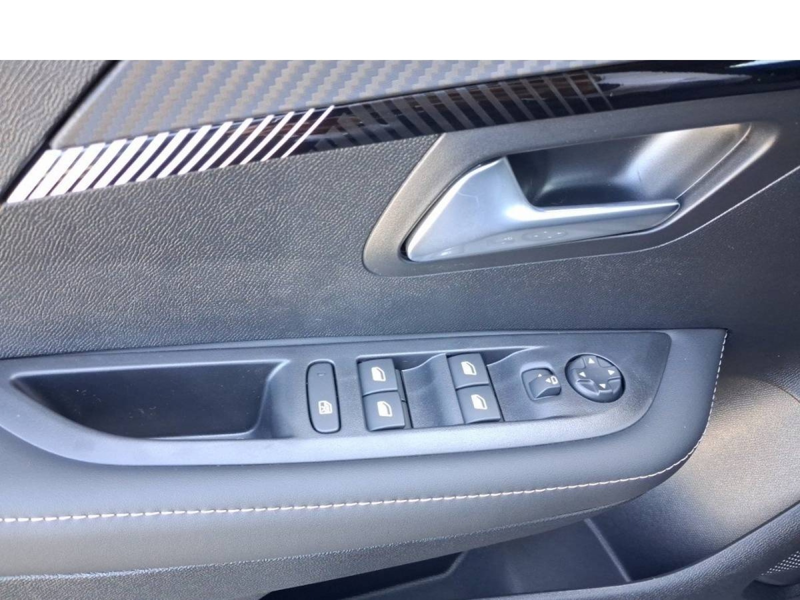 - Panneaux de porte AV avec médaillon décor Carbone injecté et baguette Noir brillante avec tampographie Quartz