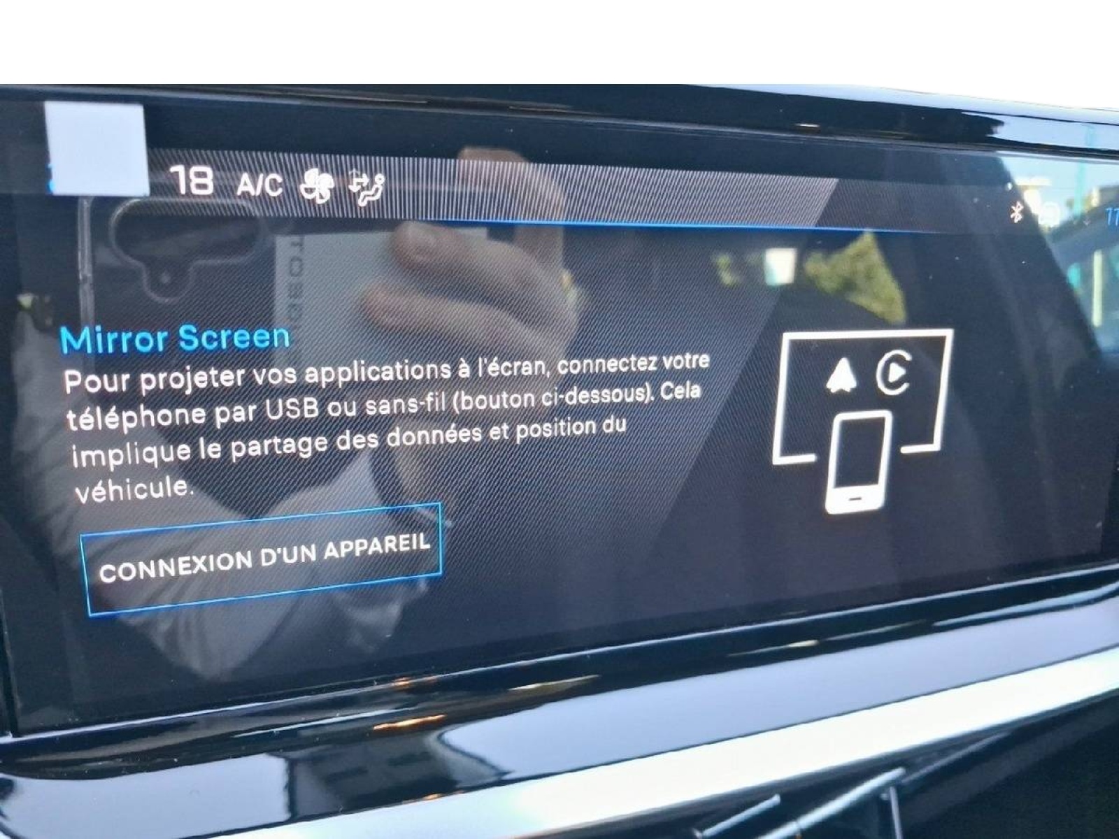 - Peugeot i-Connect: Radio DAB avec écran tactile couleur personnalisable 10" HD, Bluetooth - Mirror Screen sans fil (Apple CarPlay/Android Auto) - Wifi - 1 prise USB type C ( Data+charge), 1 prise USB type C (Charge) sur console AV