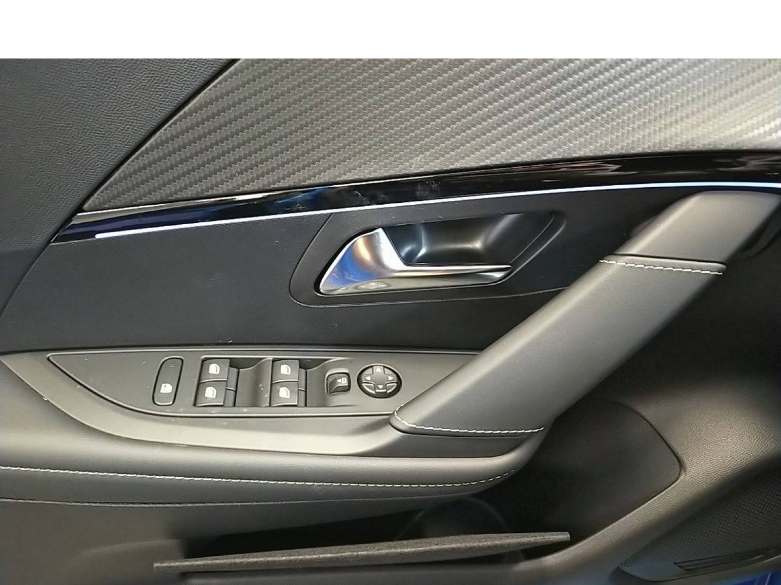 - Panneaux de porte AV avec médaillon TPE surmoulé Carbone, baguette Noir brillante avec jonc lumineux (8 couleurs) et crosse de tirage TEP avec surpiqûres Adamite
