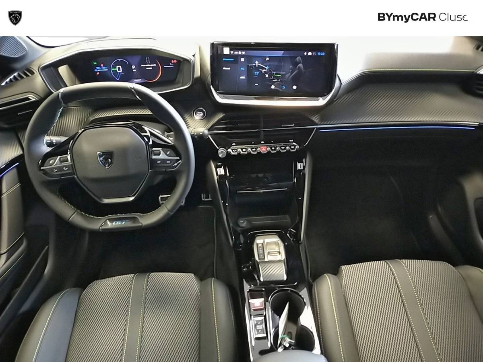 - Volant compact cuir fleur avec commandes multimédia intégrées et badge GT