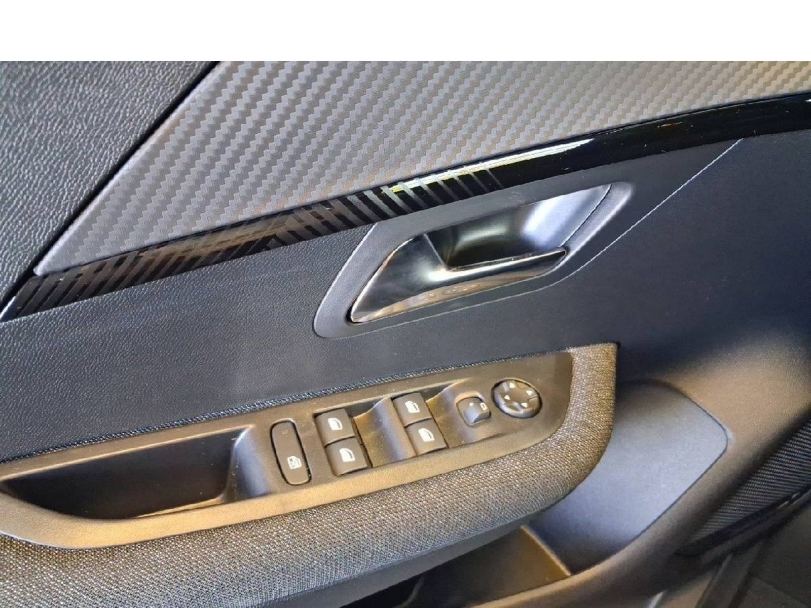 - Panneaux de porte AV avec médaillon décor Carbone injecté et baguette noire brillante et tampographie noir mat