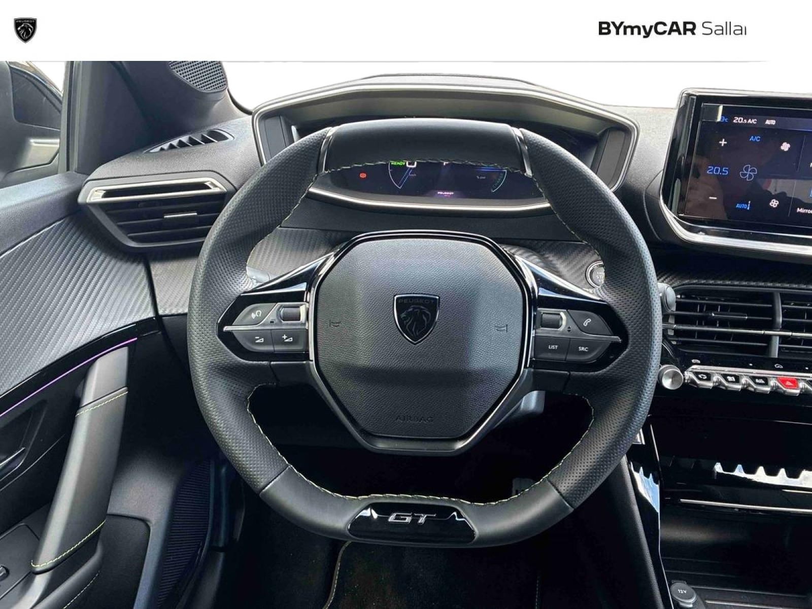 - Volant compact cuir fleur avec commandes multimédia intégrées et badge GT