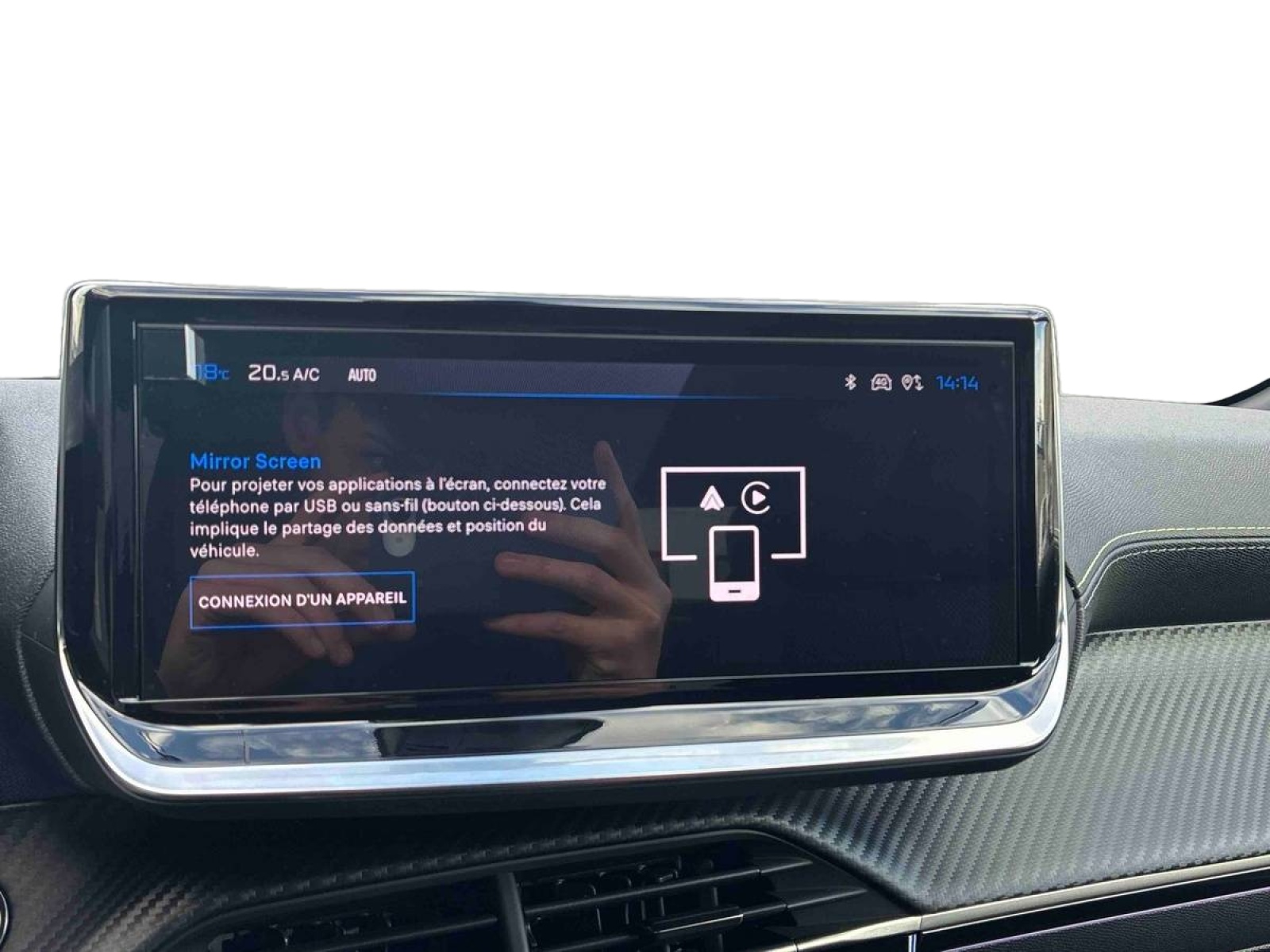 - Peugeot i-Connect Radio DAB avec écran tactile couleur personnalisable 10" HD,Bluetooth, Mirror Screen sans fil (Apple CarPlay/Android Auto), Wifi, 1 prise USB type C ( Data+charge ) et 1 prise USB type C (Charge) sur console AV