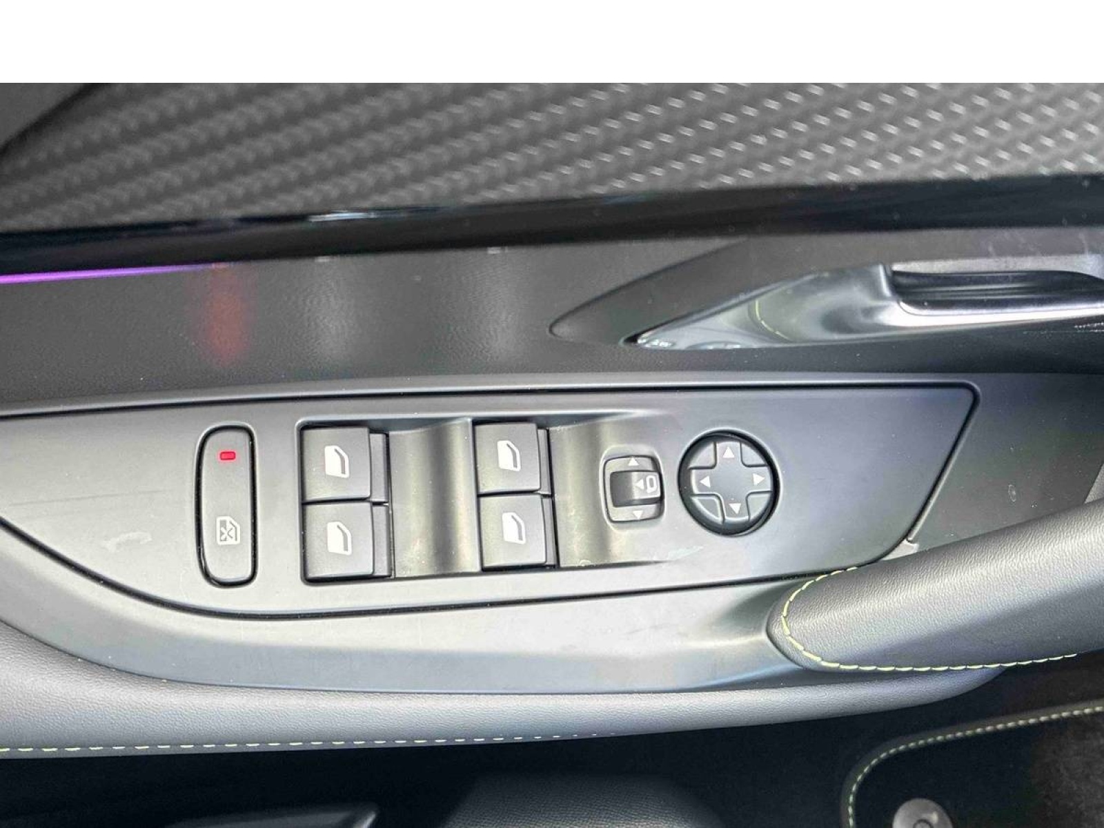 - Panneaux de porte AV avec médaillon TPE surmoulé Carbone, baguette Noir brillante avec jonc lumineux (8 couleurs) et crosse de tirage TEP avec surpiqûres Adamite