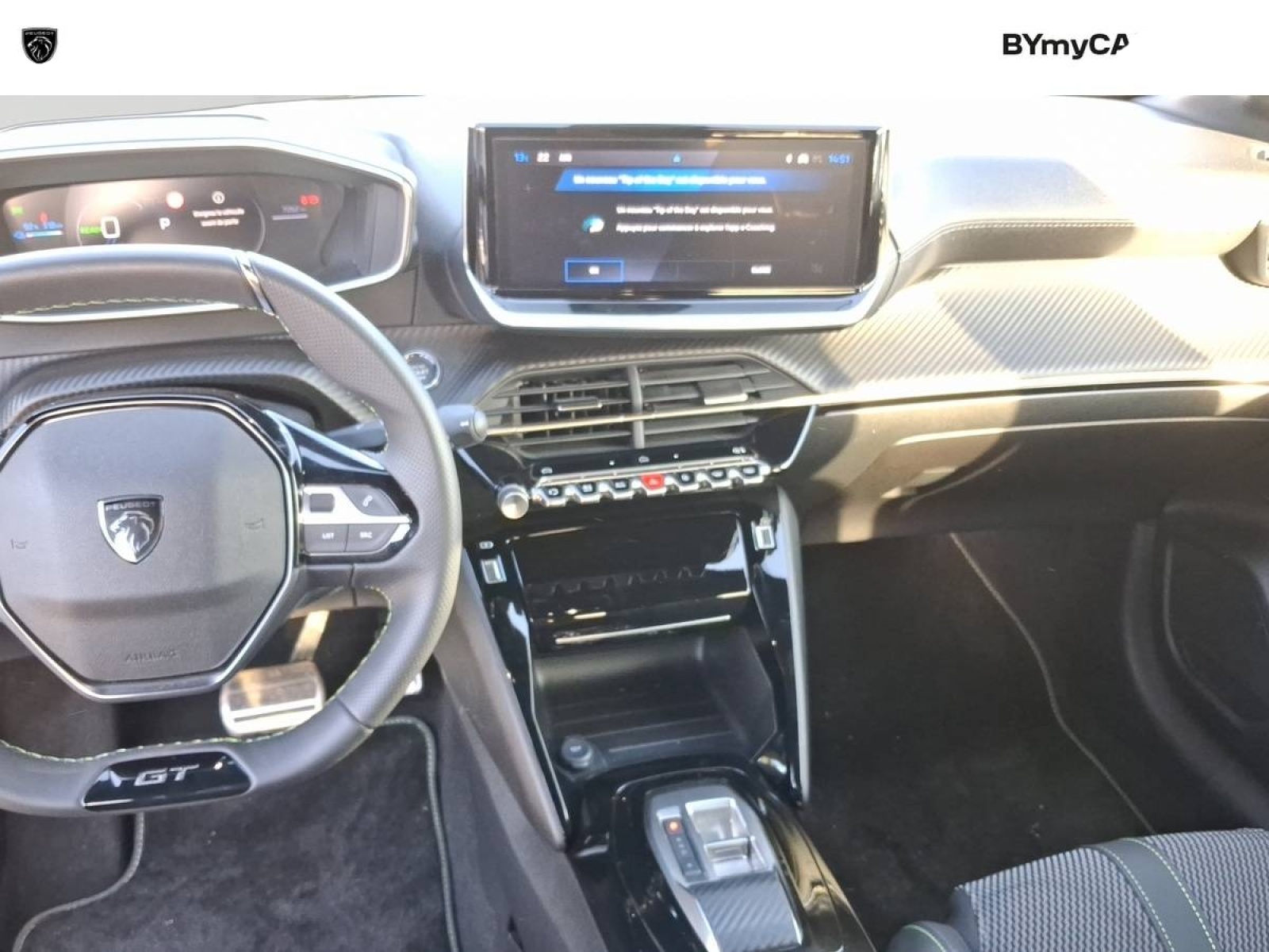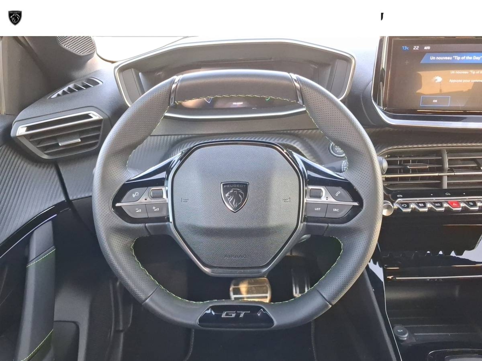 - Volant compact cuir fleur avec commandes multimédia intégrées et badge GT