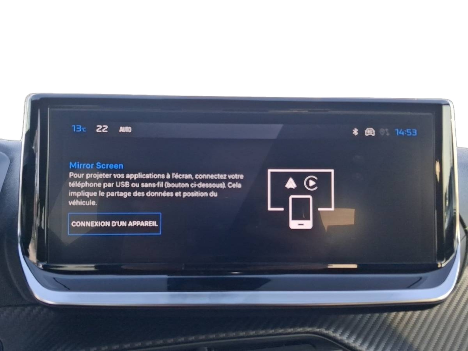- Peugeot i-Connect Radio DAB avec écran tactile couleur personnalisable 10" HD,Bluetooth, Mirror Screen sans fil (Apple CarPlay/Android Auto), Wifi, 1 prise USB type C ( Data+charge ) et 1 prise USB type C (Charge) sur console AV