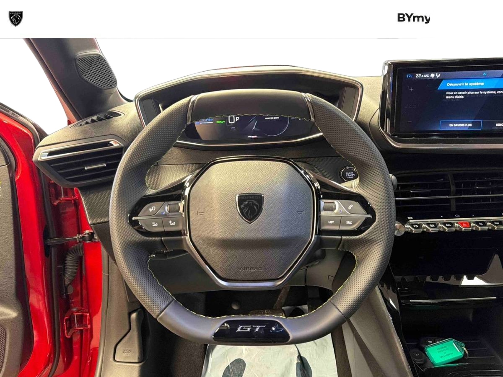 - Volant compact cuir fleur avec commandes multimédia intégrées et badge GT
