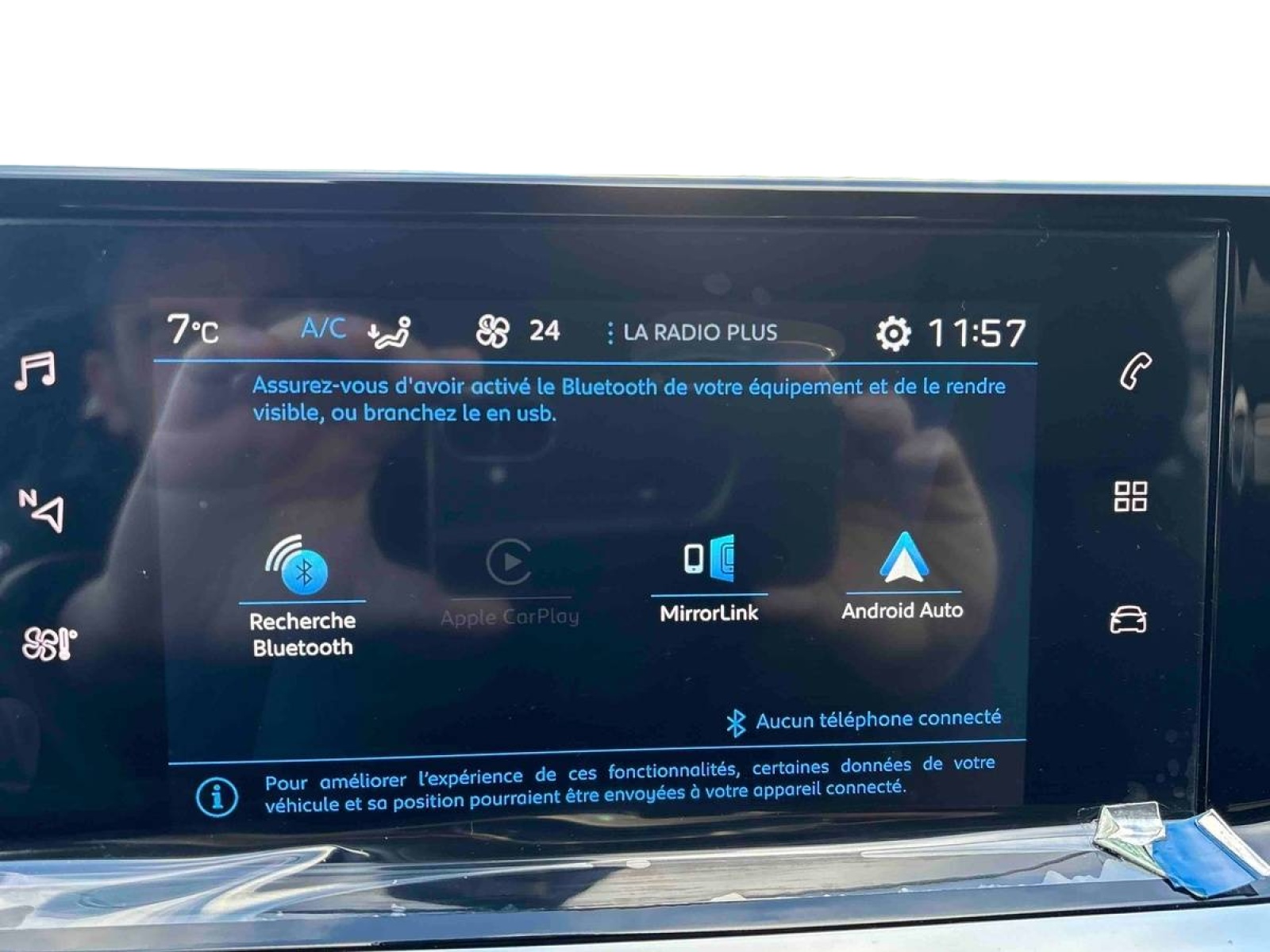 - Radio avec écran tactile 7" couleur capacitif, 2 prises USB (DATA type A, recharge type C) sur console AV