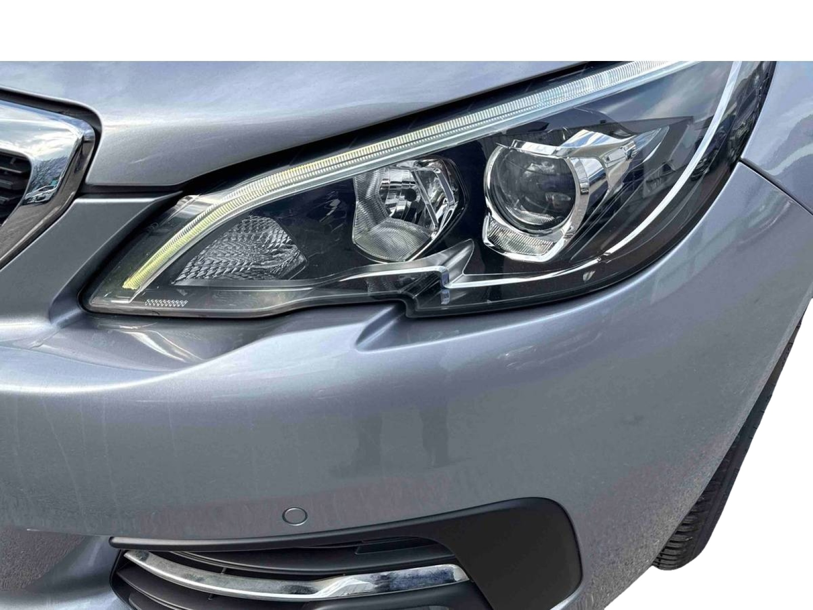 - Calandre avec jonc périphérique chromé et ailettes Noires, intégrant le lion PEUGEOT