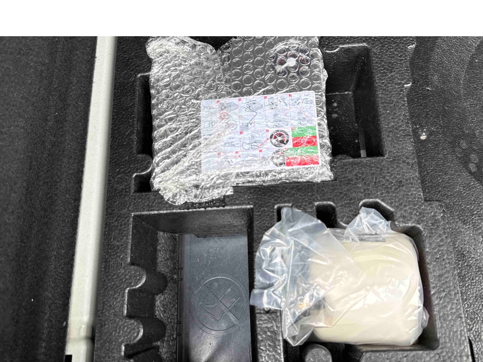 - Rangement dans le coffre, spécifique pour triangle de pré-signalisation et trousse de secours