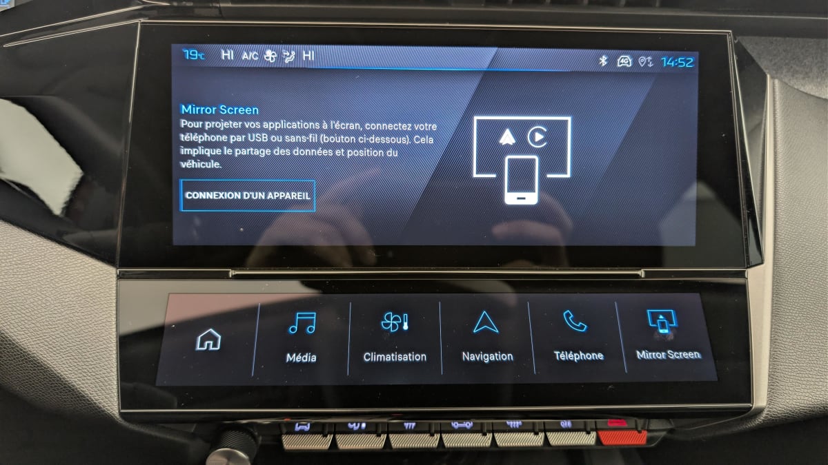 - Fonction Mirror Screen (Apple CarPlay/Android Auto) sans fil