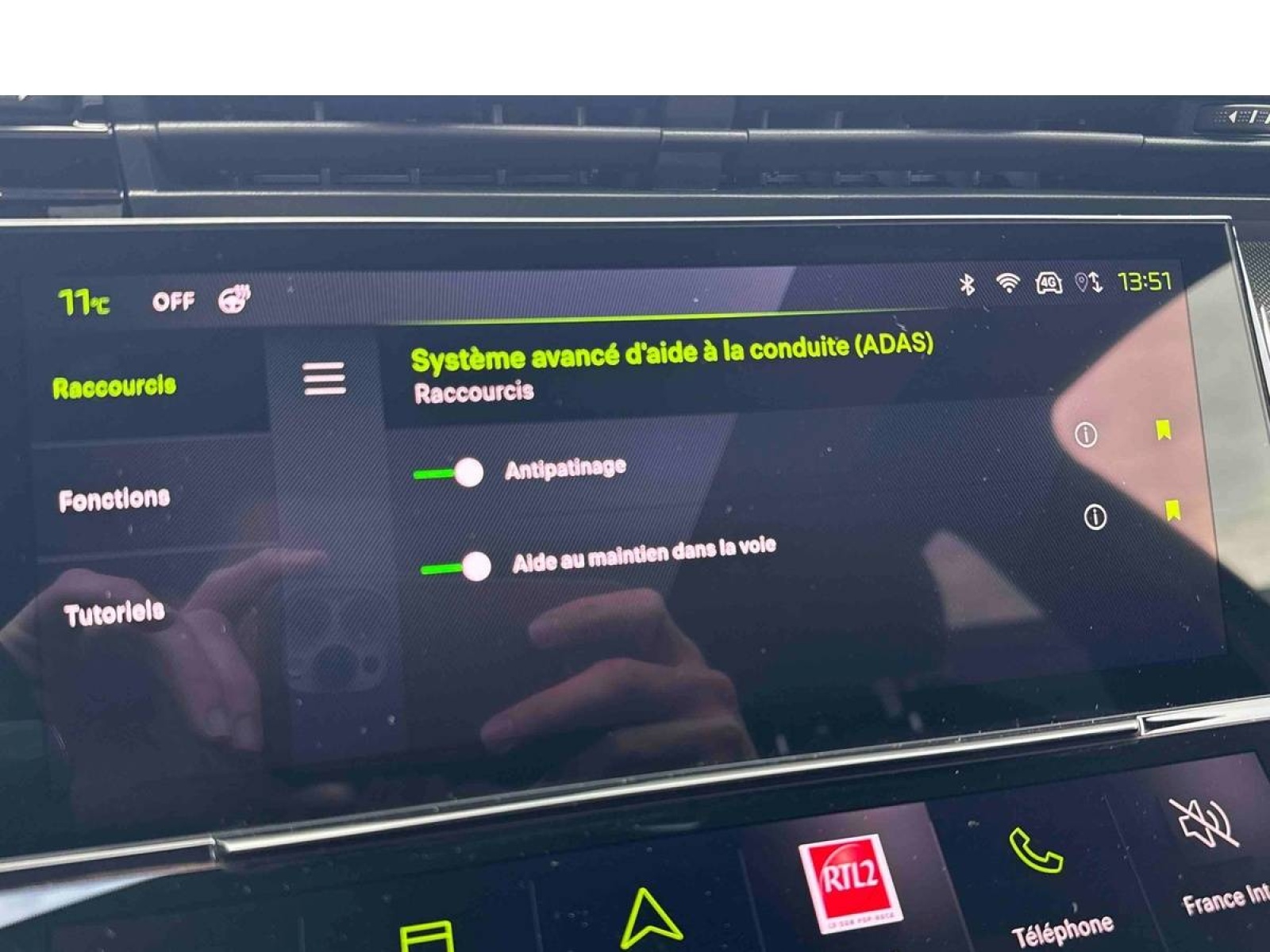 - Alerte active de franchissement involontaire de ligne et bas côté