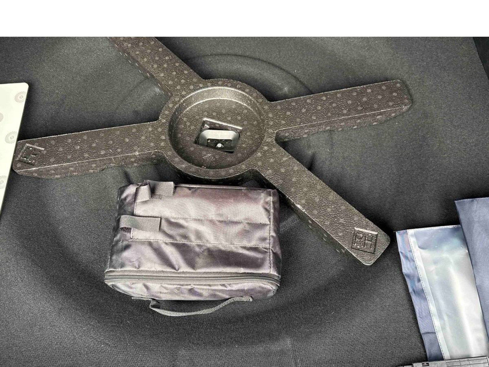 - Kit de dépannage de pneumatique : compresseur 12 volts, flacon de produit de colmatage, anneau de remorquage, deux cales de roue, manivelle de frein de stationnement électrique