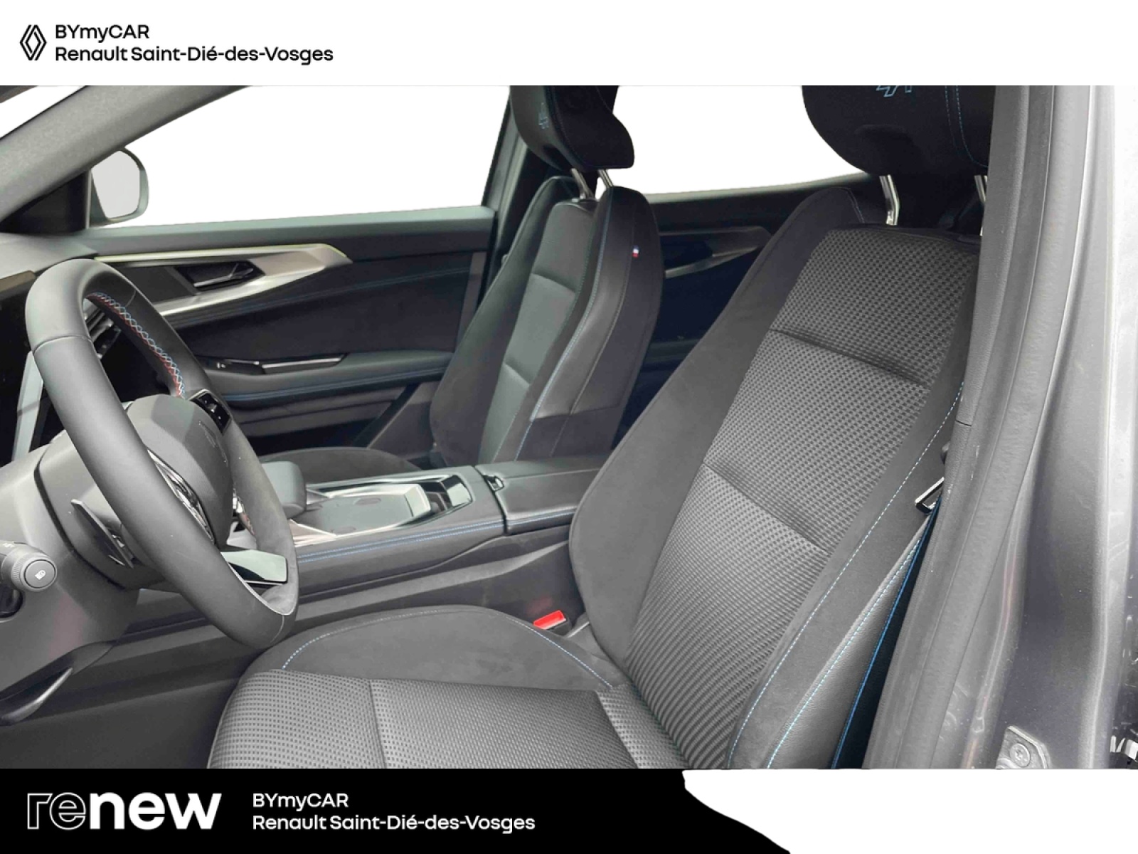 - Sellerie mixte tissu carbone / alcantara avec surpiqûres bleues