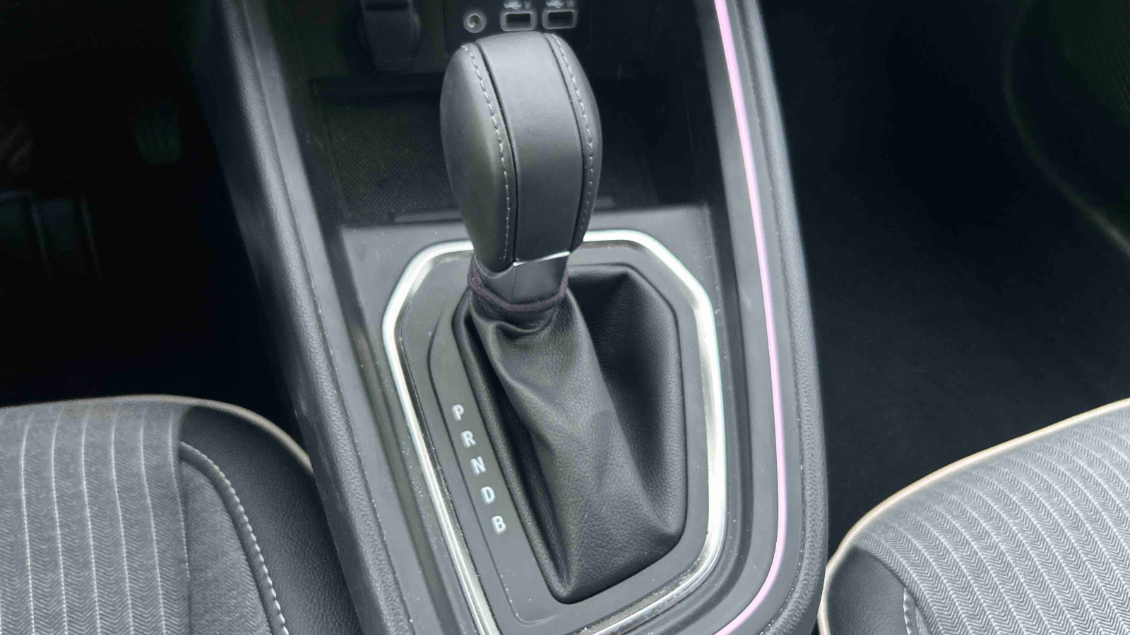 - Sellerie textile et textile enduit grainé gris/noir avec surpiqûres cuivre