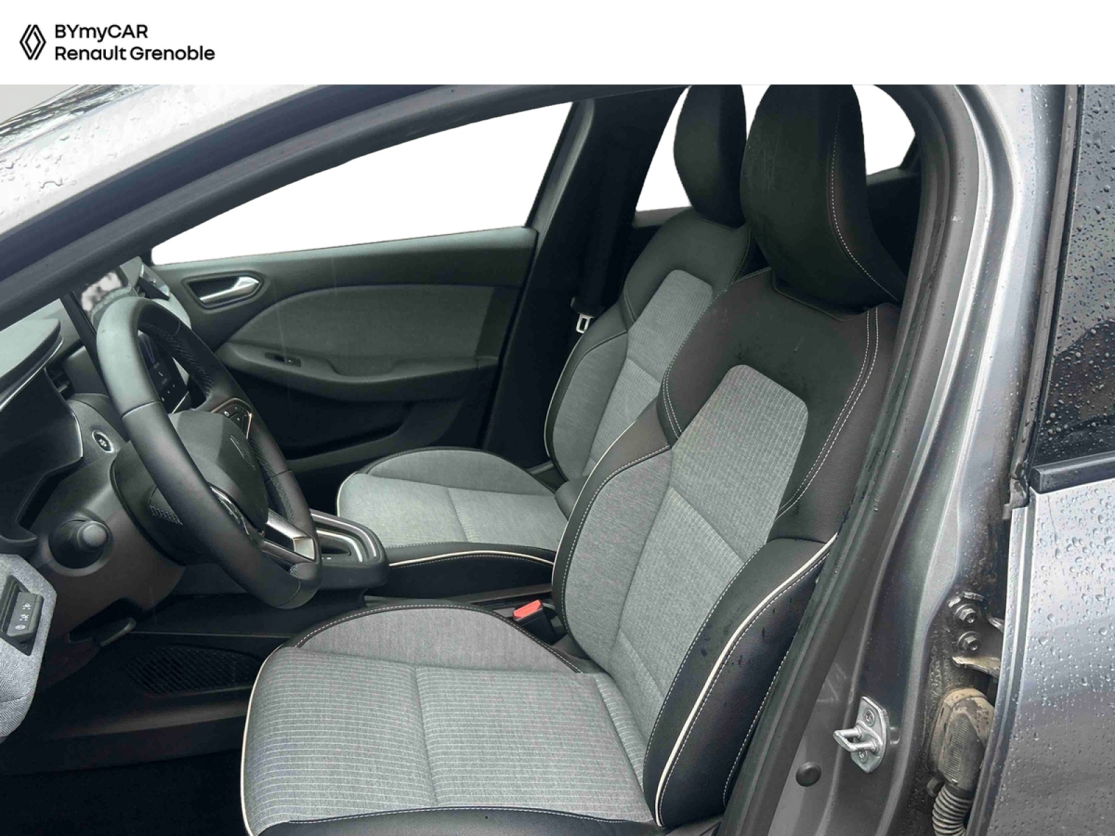 - Sellerie textile et textile enduit grainé gris/noir avec surpiqûres cuivre