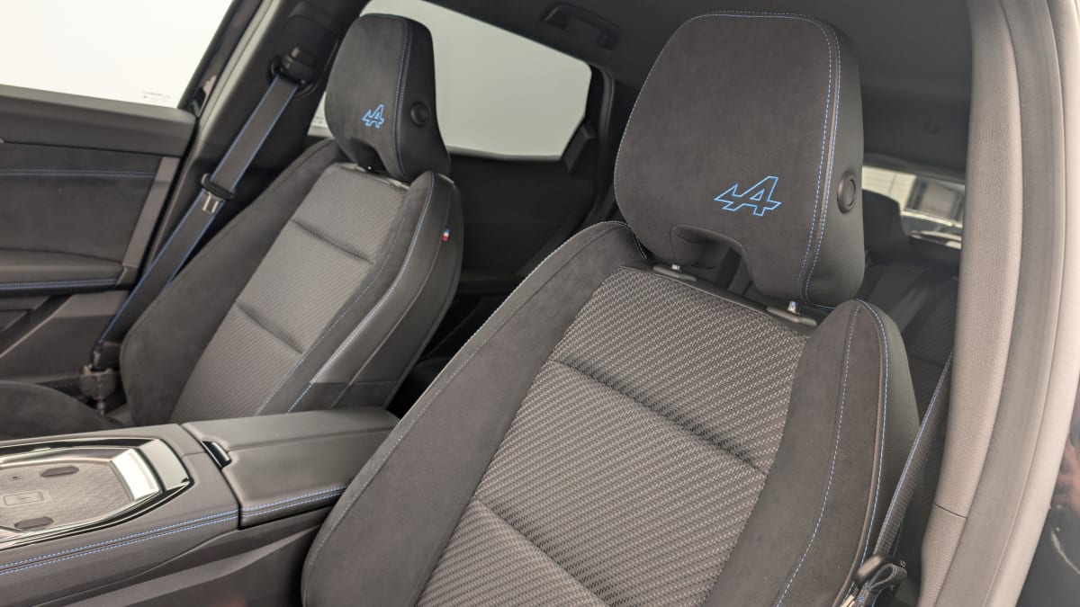 - Sellerie mixte tissu carbone / alcantara avec surpiqûres bleues