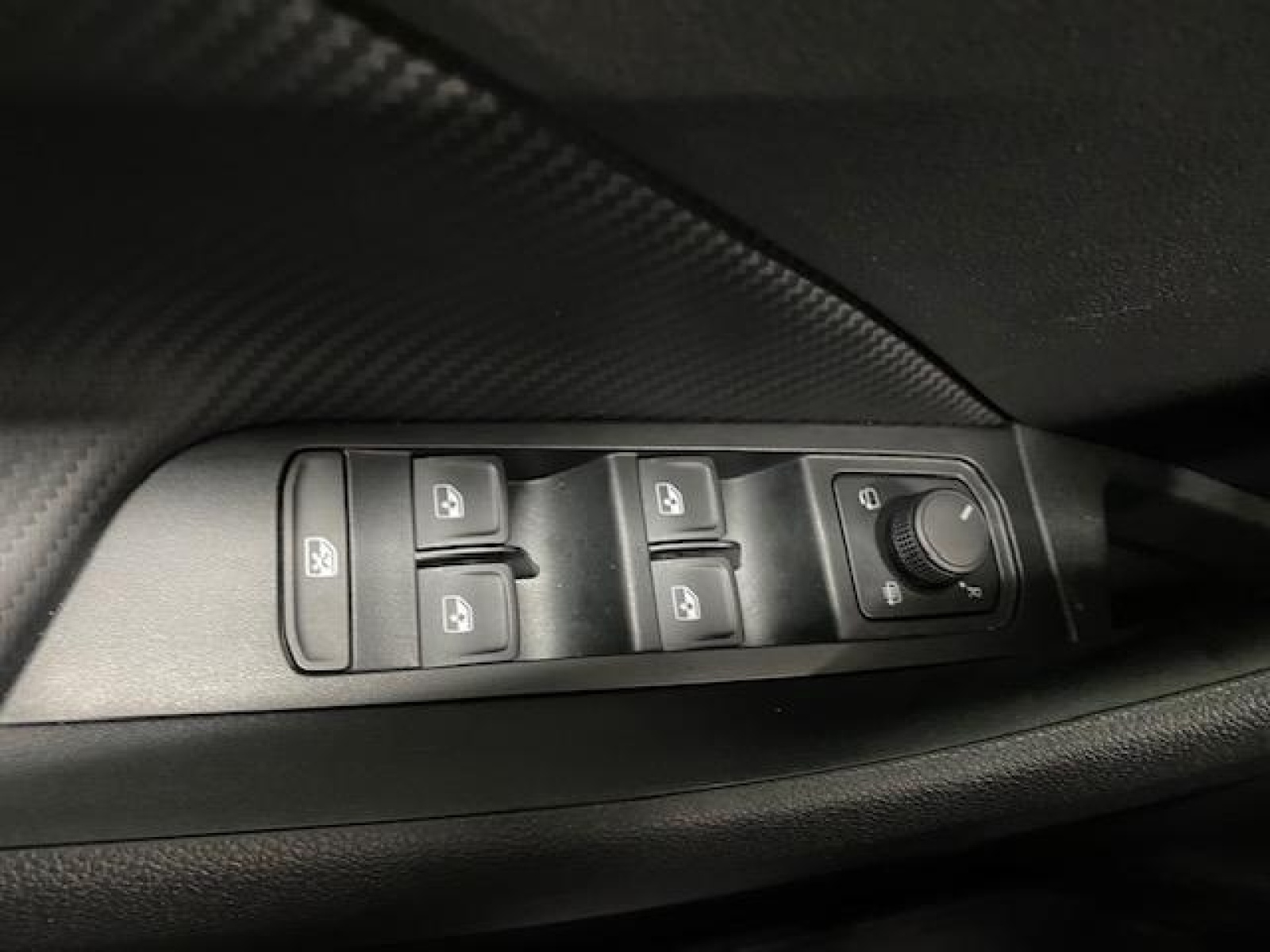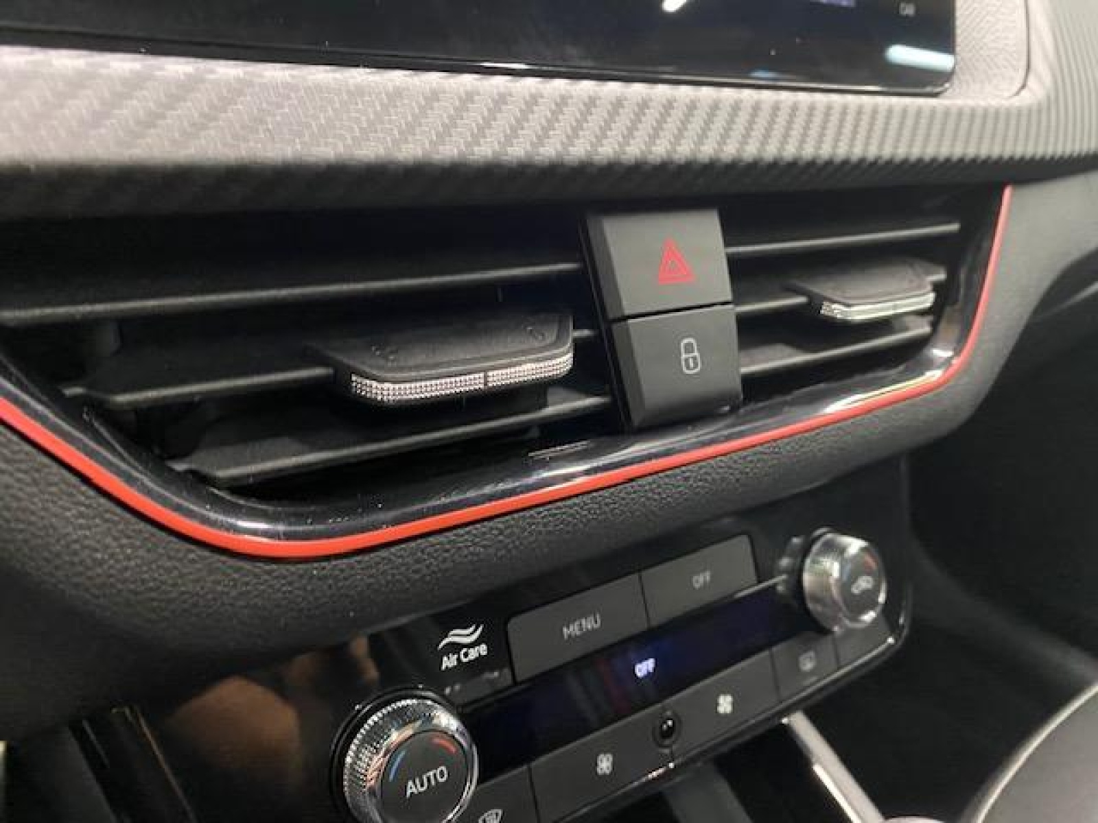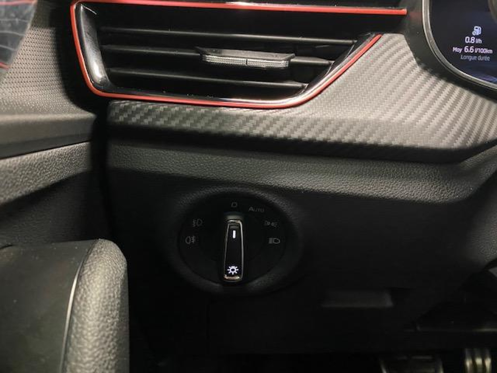 - Insert décoratif sur la planche de bord effet Carbone avec liseré rouge et inserts de porte matériau synthétique effet carbone