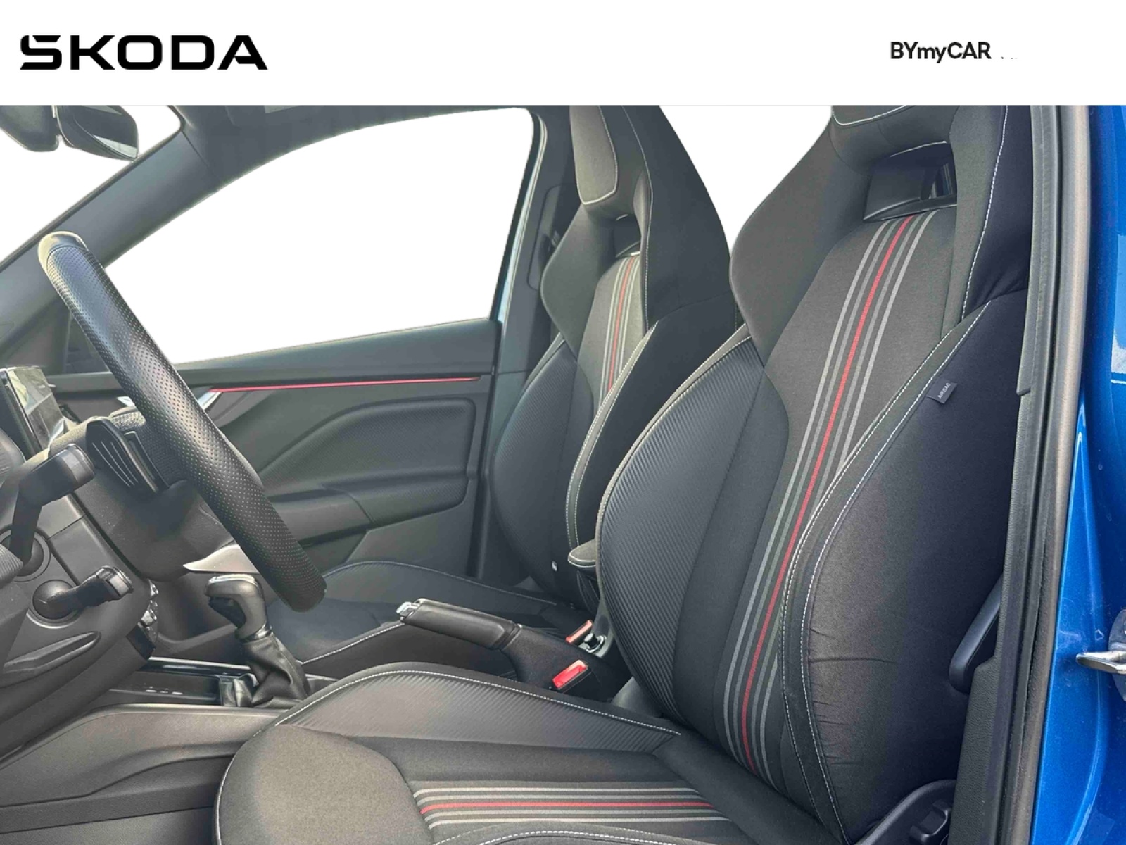- Design intérieur Monte Carlo: sellerie tissu noir avec bandes grises/rouge Red Stripe et matériau synthétique effet carbone, ciel de toit noir