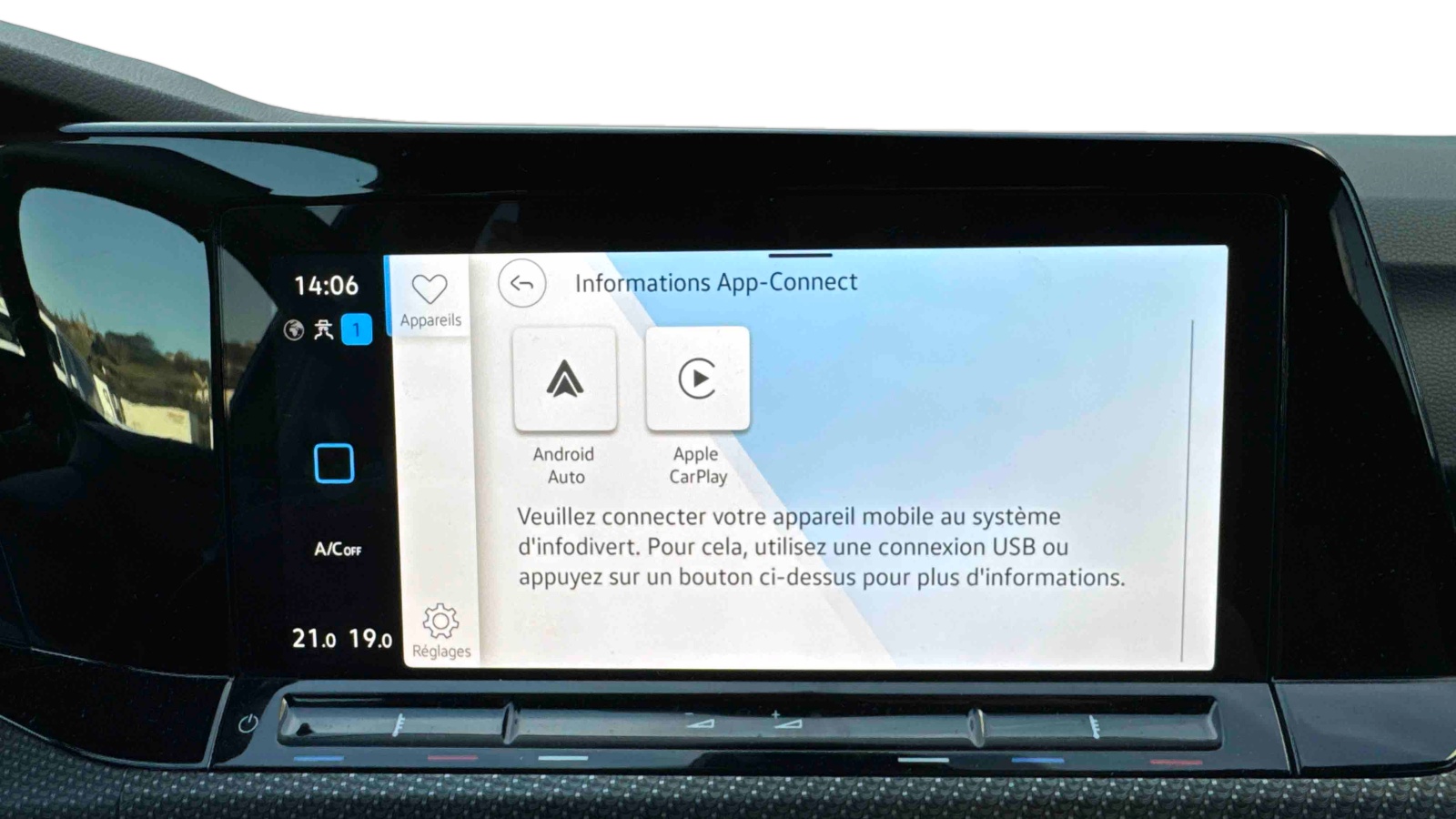 - App-Connect sans fil, affichage et contrôle via l'écran tactile de la voiture du contenu, des fonctions et des applications compatibles présents sur le Smartphone (compatibilité avec les systèmes Apple CarPlay et Android Auto). Fonction sans fil uniquement disponible avec Apple CarPlay
